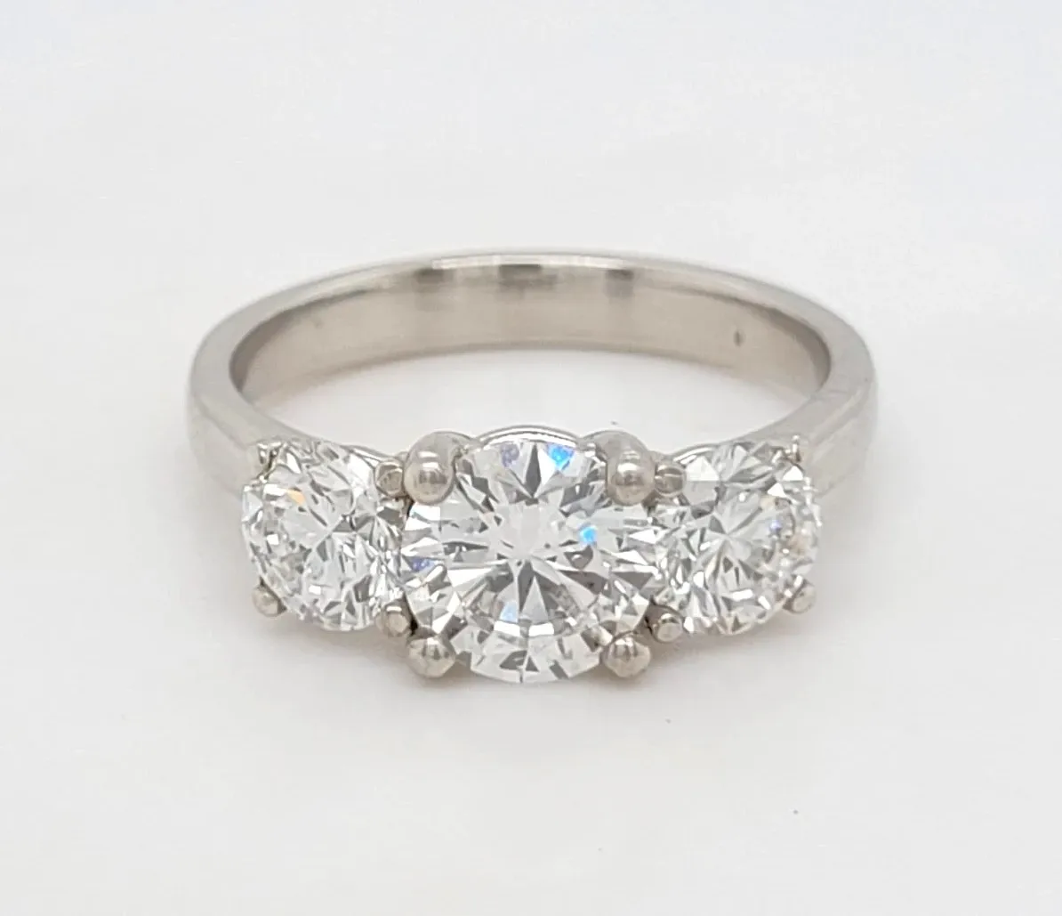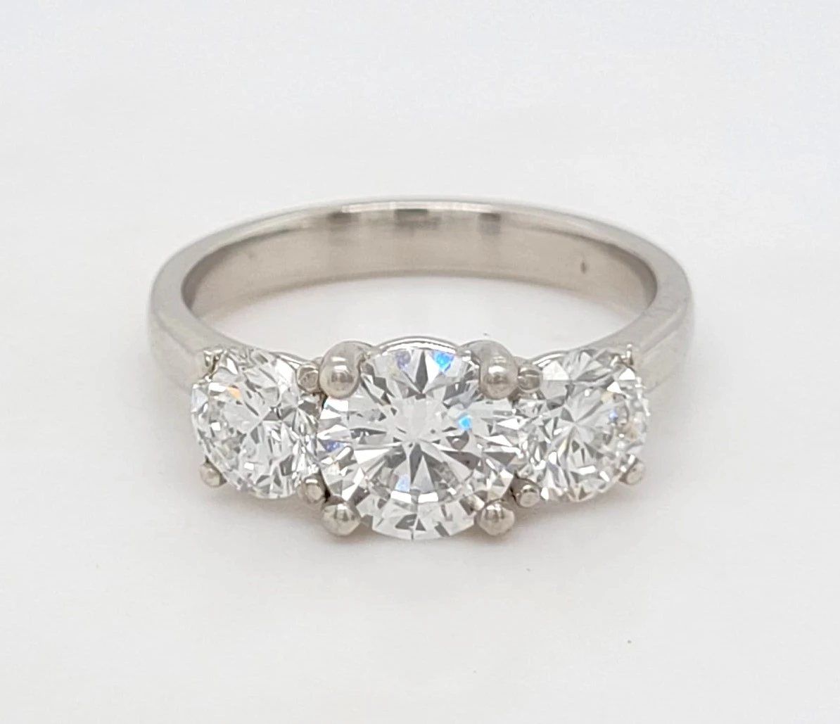 2.06ct Lab Grown Diamond & Platinum Trilogy Ring – Size L, 5.6g Celebrate your story with this stunning trilogy ring featuring 2.06 carats of brilliant lab grown diamonds set in sleek, enduring platinum. The classic three-stone design symbolises the past, present, and future—making it an elegant choice for engagements, anniversaries, or meaningful milestones. Features: