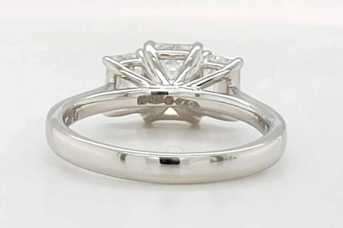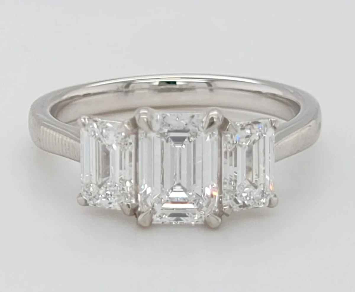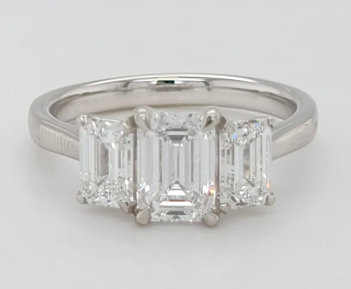2.06ct Lab Grown Diamond & Platinum Trilogy Ring – Size M (5.7g) Celebrate your past, present, and future with this elegant 2.06ct lab grown diamond trilogy ring, crafted in luxurious platinum. Each of the three brilliant lab created diamonds symbolises a moment in time—together forming a timeless design that sparkles with meaning and modern sophistication. The ethically sourced diamonds are set in a sleek, durable platinum band weighing 5.7 grams, offering superior strength and a refined finish that enhances the natural brilliance of each stone. A stunning choice for engagements, anniversaries, or a meaningful gift of love.