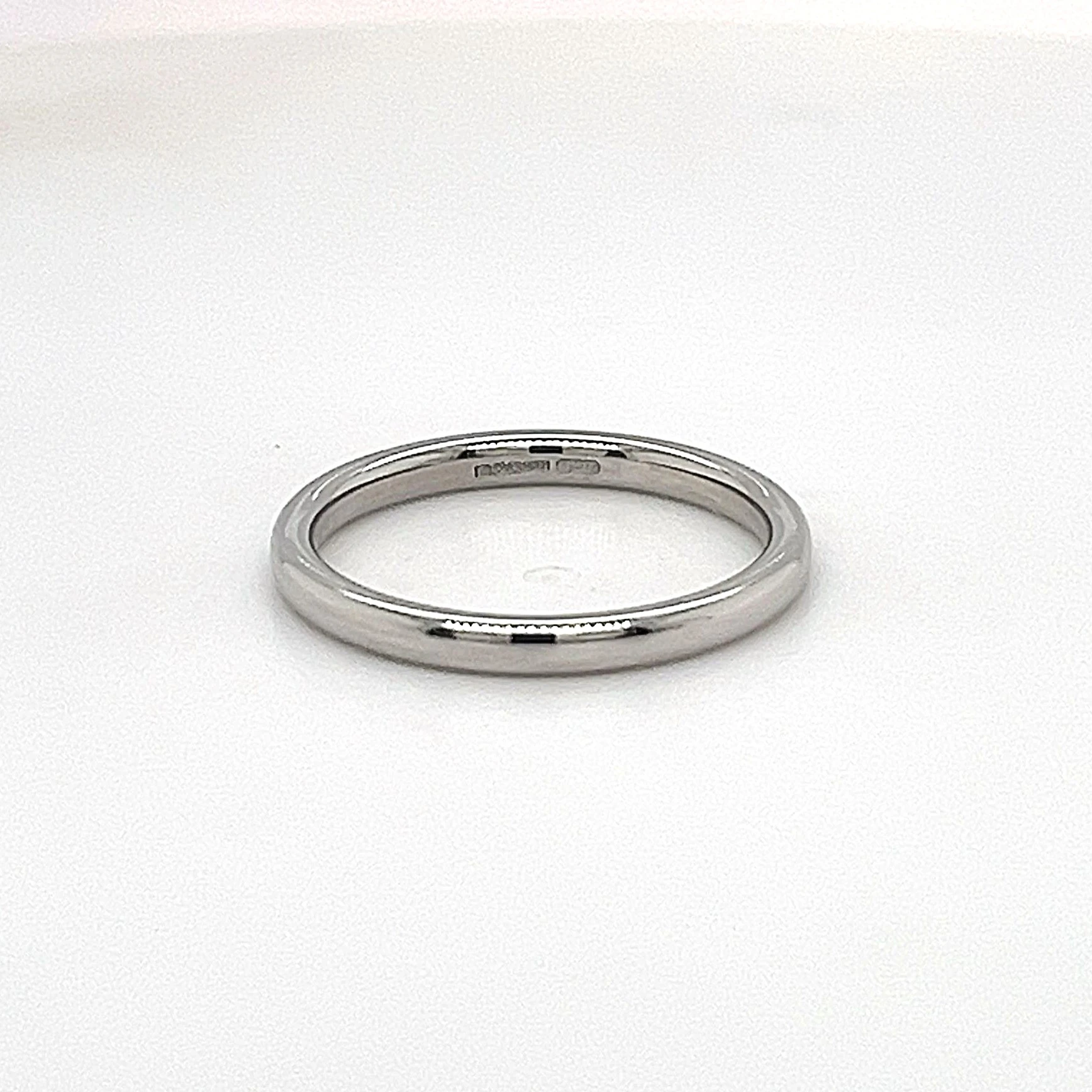 2.0mm Platinum Traditional Court Wedding Band – 3.1g A classic expression of timeless commitment, this 2.0mm wedding band is crafted from premium platinum for enduring strength and lasting shine. Its traditional court profile ensures a smooth, comfortable fit, making it ideal for everyday wear while maintaining an elegant, understated look. Weighing 3.1 grams, this lightweight band offers subtle sophistication and is perfect as a minimalist wedding ring or for stacking alongside other rings. The polished platinum finish enhances its natural lustre, symbolising the purity and permanence of love.