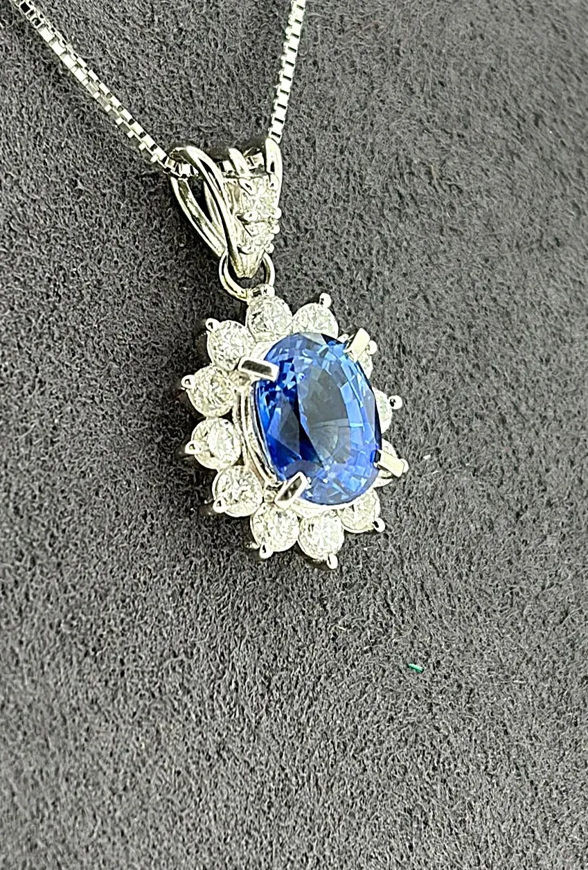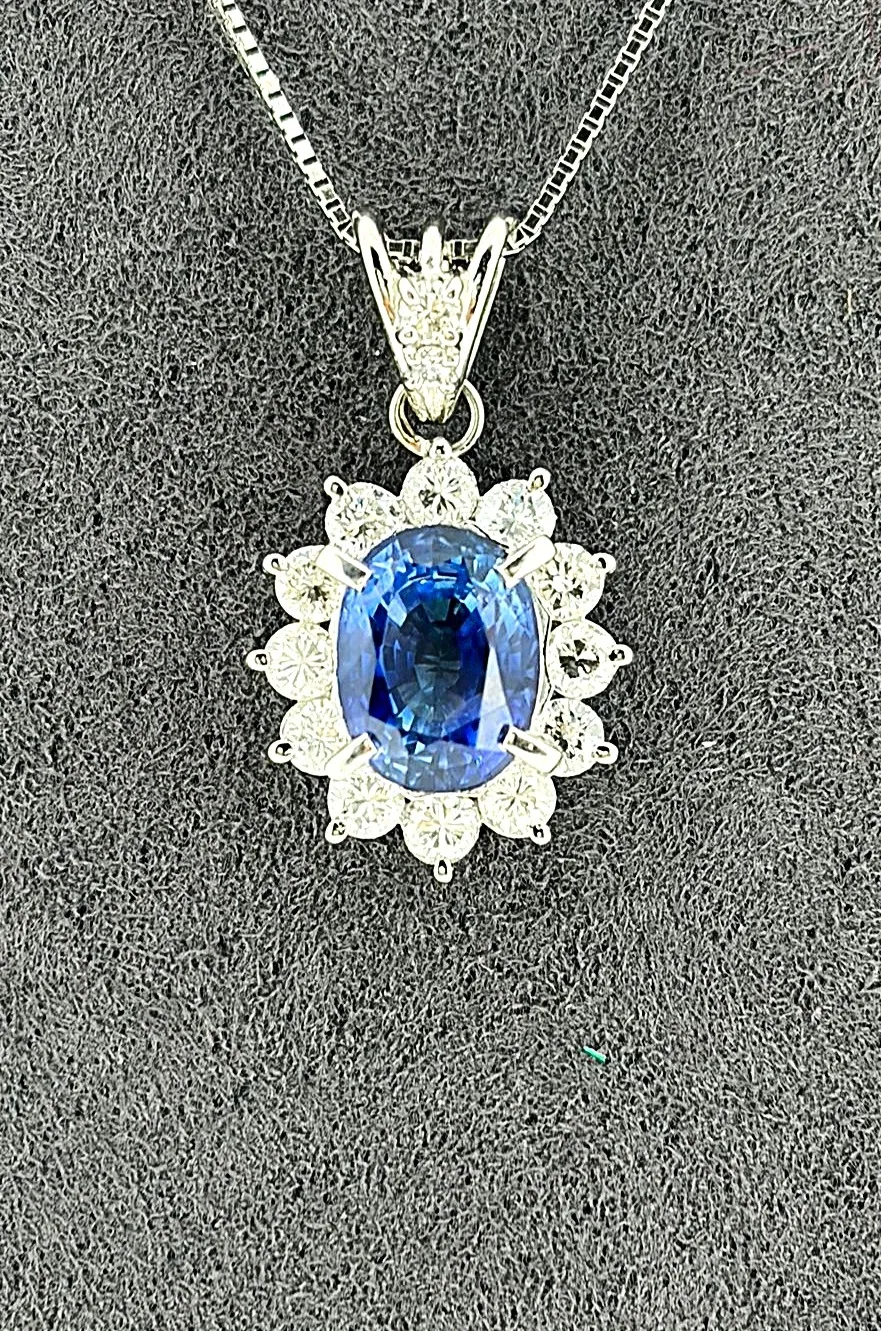 Add timeless elegance to your collection with this exceptional 2.31ct Sapphire & 0.80ct Diamond Pendant, beautifully crafted in premium platinum. The deep blue sapphire takes centre stage, offering rich, velvety colour enhanced by 0.80ct of brilliant diamonds that frame the gemstone with breathtaking sparkle. Suspended from a versatile 16/18 inch adjustable platinum chain, this pendant weighs 5.4g, combining a luxurious feel with refined sophistication. Its classic yet striking design makes it an ideal choice for both everyday wear and special occasions. A stunning gift for anniversaries, milestone moments, or anyone who appreciates fine sapphire jewellery.