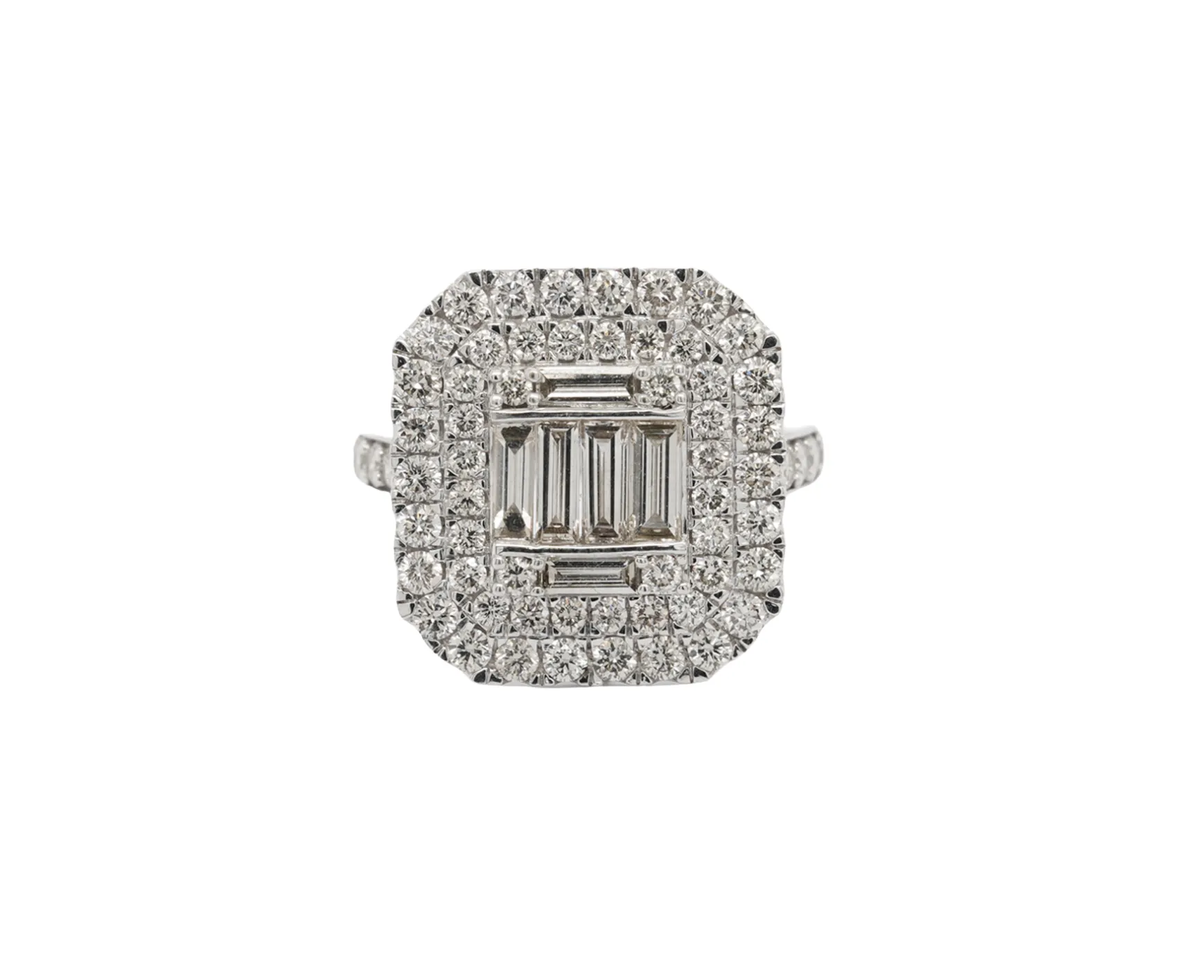2.55ct Diamond & 9ct White Gold Halo Cluster Dress Ring 6.1g