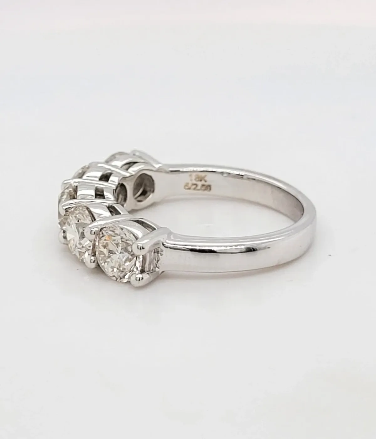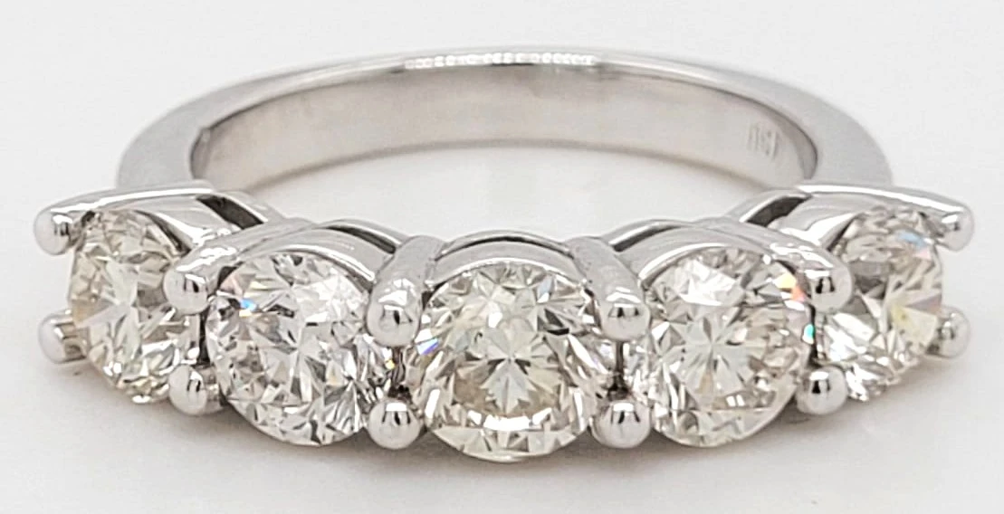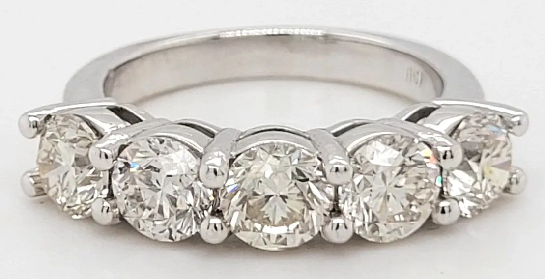 Celebrate everlasting love with this exquisite 5-stone eternity ring, showcasing a dazzling total of 2.56ct of brilliant-cut diamonds. Expertly crafted in 18ct white gold and weighing 5.7g, each stone is set in a sleek, classic design that radiates timeless elegance. Perfect for anniversaries, milestone moments, or as a luxurious wedding band, this ring is a bold yet refined statement of enduring commitment.