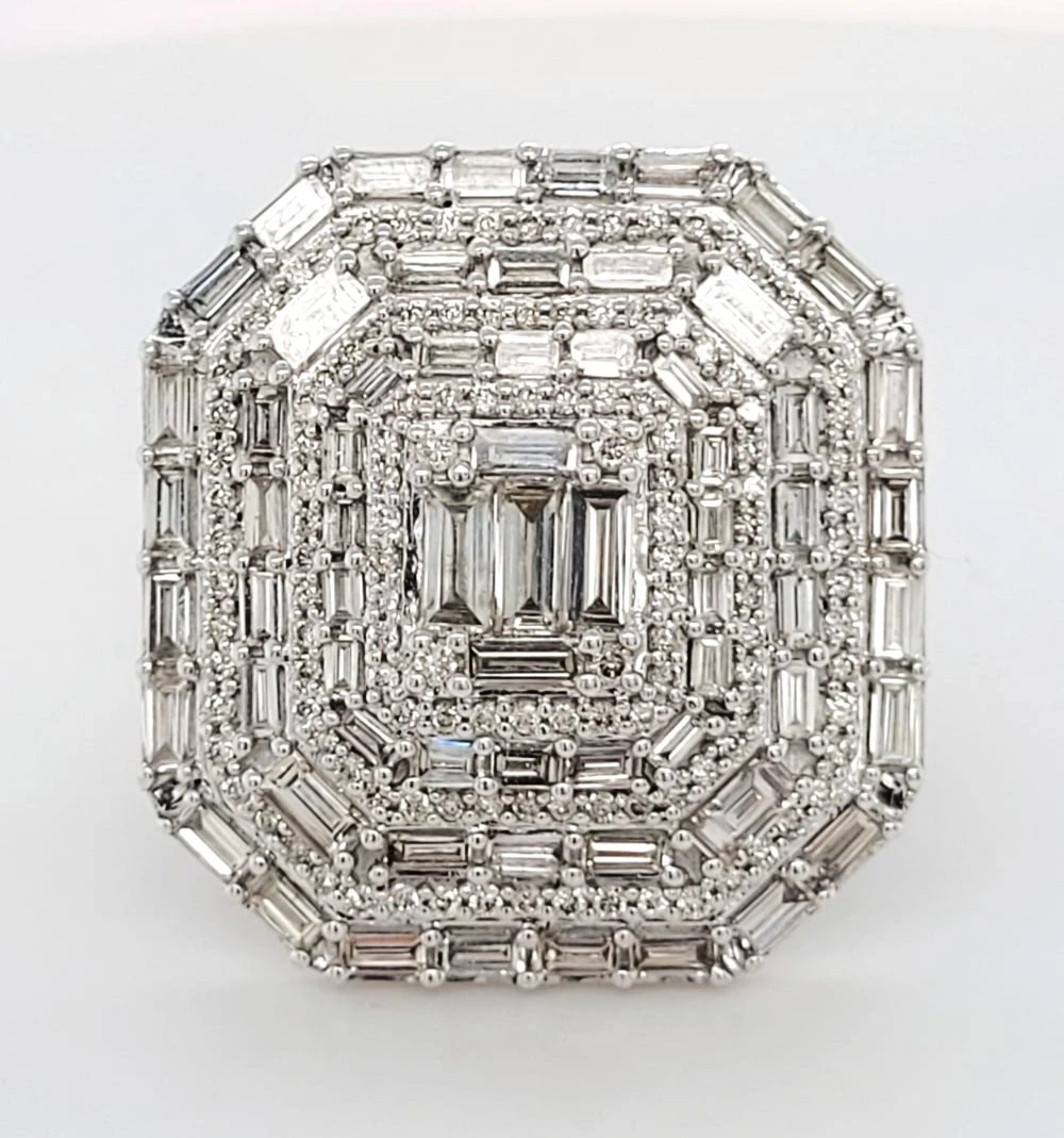 Make a bold statement with this luxurious 2.60 carat natural diamond dress ring, set in solid 9ct white gold. With its striking design and exceptional sparkle, this 10g ring offers a weighty, high-quality feel and timeless glamour. Perfect for evening wear, special occasions, or as a standout piece in any fine jewellery collection.