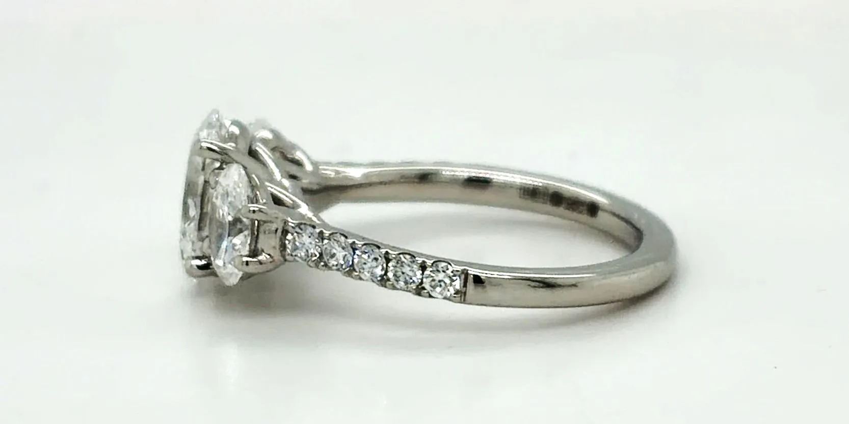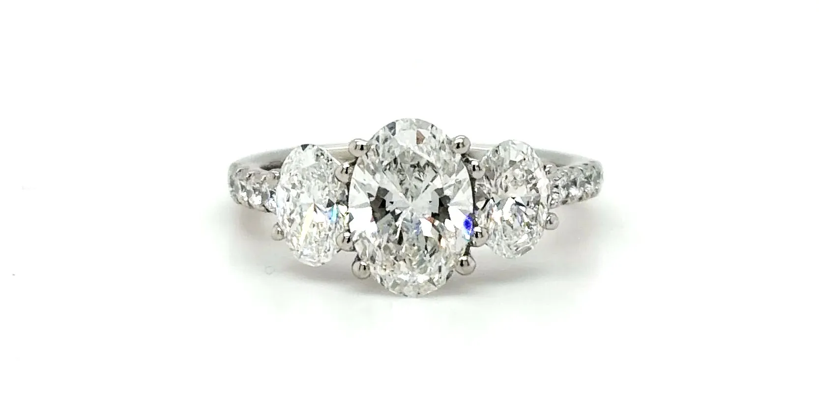 Striking and sophisticated, this beautiful trilogy diamond ring is crafted in premium platinum and set with a total of 2.75 carats of lab grown diamonds. The three-stone design symbolises the past, present, and future, making it a meaningful and elegant choice for an engagement ring or anniversary gift. The brilliance and fire of the lab grown diamonds are perfectly complemented by the naturally white sheen of platinum. Weighing 6.2 grams, the ring offers a substantial, luxurious feel while maintaining excellent comfort and durability for everyday wear. Combining ethical sourcing with timeless design, this platinum trilogy ring is a stunning statement of modern luxury and enduring love.