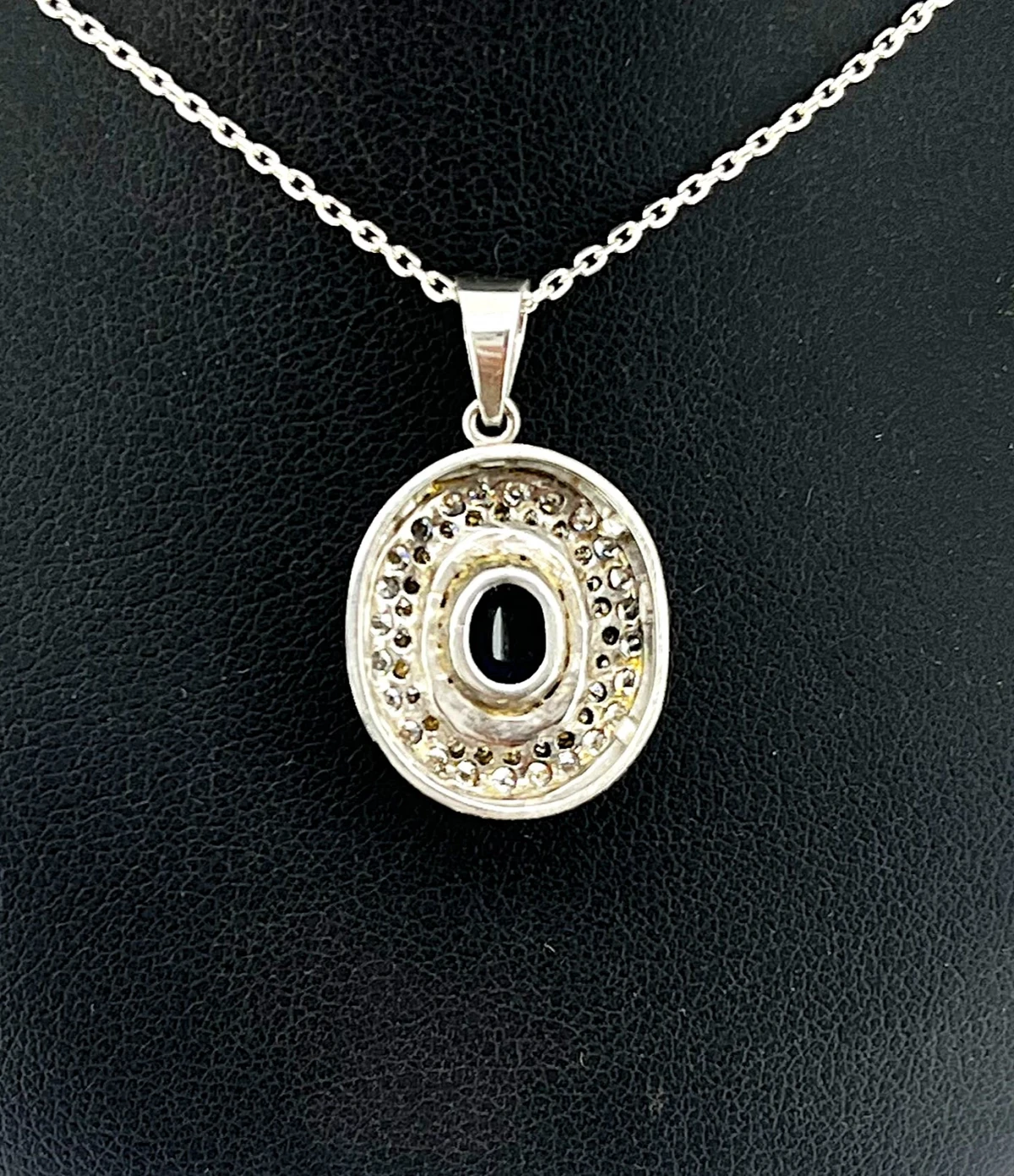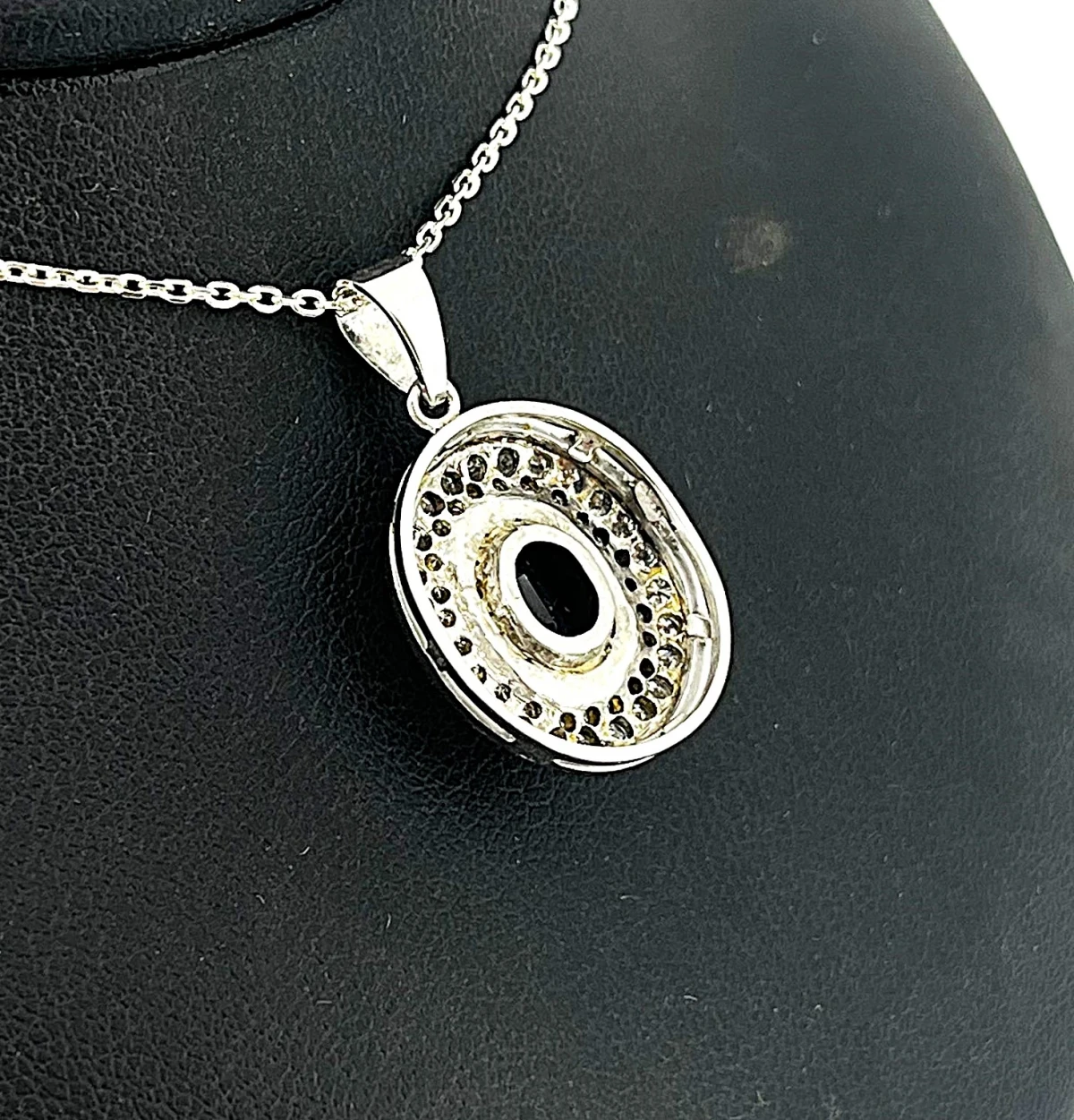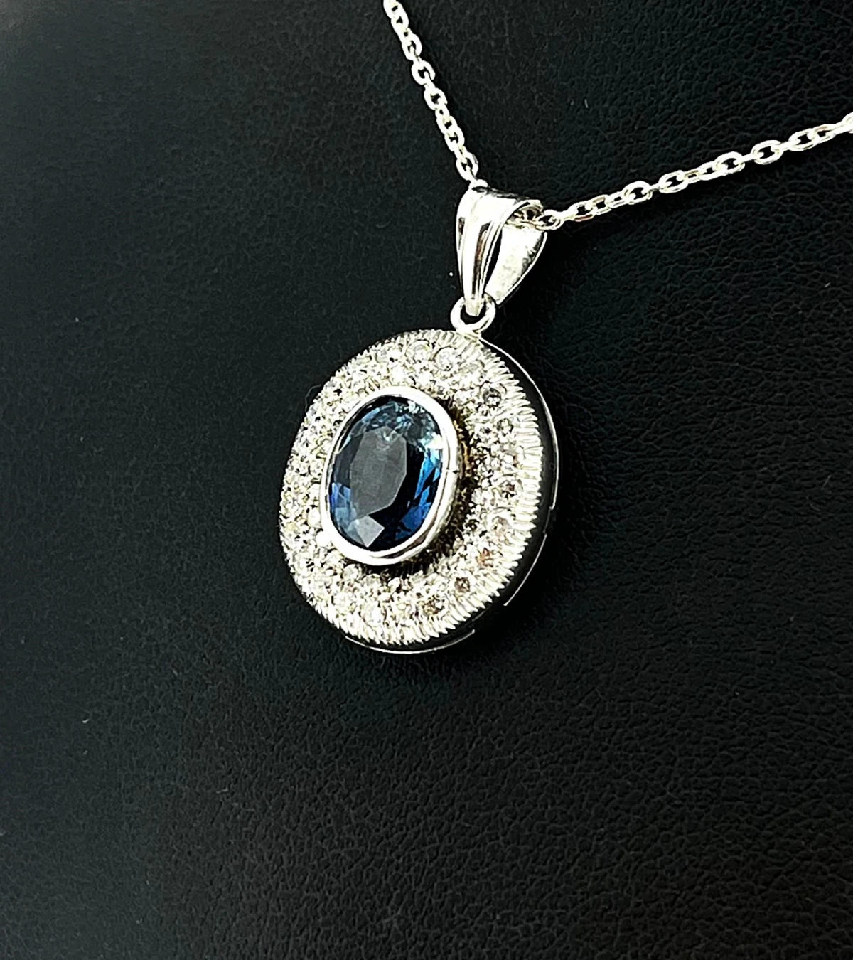 2.80ct Sapphire & 1.00ct Diamond Pendant – 18ct White Gold (4.2g) Exude elegance and sophistication with this stunning 18ct white gold pendant, featuring a vivid 2.80ct sapphire at its centre, complemented by 1.00ct of sparkling diamonds. The perfect balance of colour and brilliance, this pendant captures light beautifully, making it a timeless statement piece. Weighing 4.2 grams, its refined design ensures both comfort and luxury, while the high-quality diamonds enhance the sapphire’s rich hue. Ideal for special occasions, anniversaries, or as a cherished gift, this pendant is a lasting symbol of beauty and elegance.