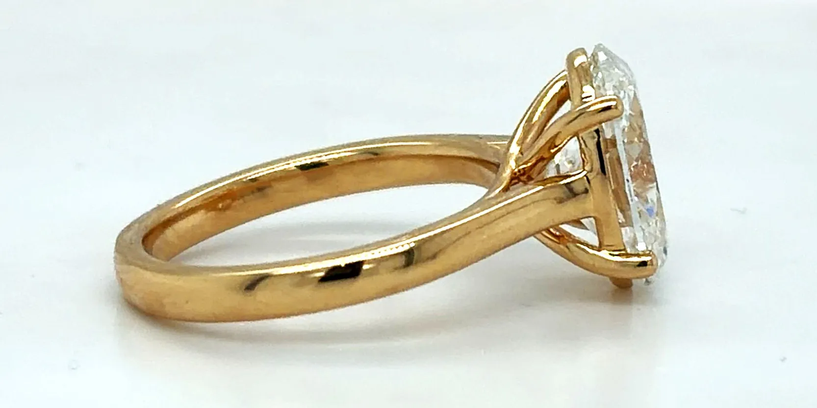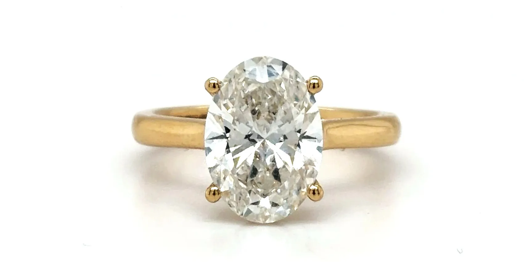Bold, luxurious and timeless, this striking solitaire ring is crafted in rich 18ct gold and set with an impressive 3.06 carat lab grown diamond. The classic solitaire setting allows the centre stone to take full focus, maximising light performance for exceptional brilliance and fire. Weighing 5.1 grams, the ring offers a refined yet substantial feel, making it ideal for both everyday elegance and special occasions. The warmth and prestige of 18ct gold perfectly complement the dazzling presence of the 3.06ct diamond, creating a piece that is both contemporary and enduring. Perfect as a statement engagement ring or milestone anniversary piece, this lab grown diamond solitaire combines ethical sourcing with outstanding visual impact.