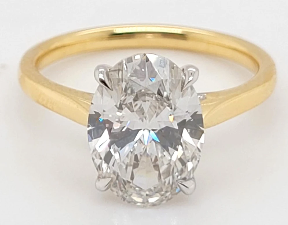3.34ct Lab Grown Oval Diamond & 18ct Gold Solitaire 4.0g Size: N