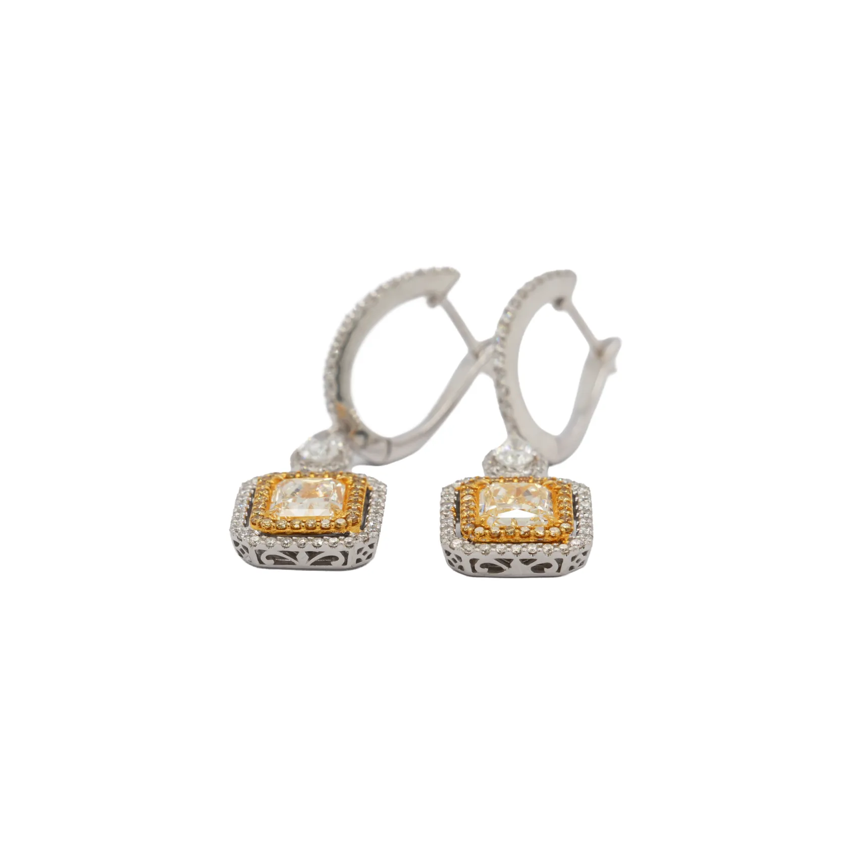3.50ct Natural Yellow & White Diamond & 18ct White Gold Drop Earrings 7.7g