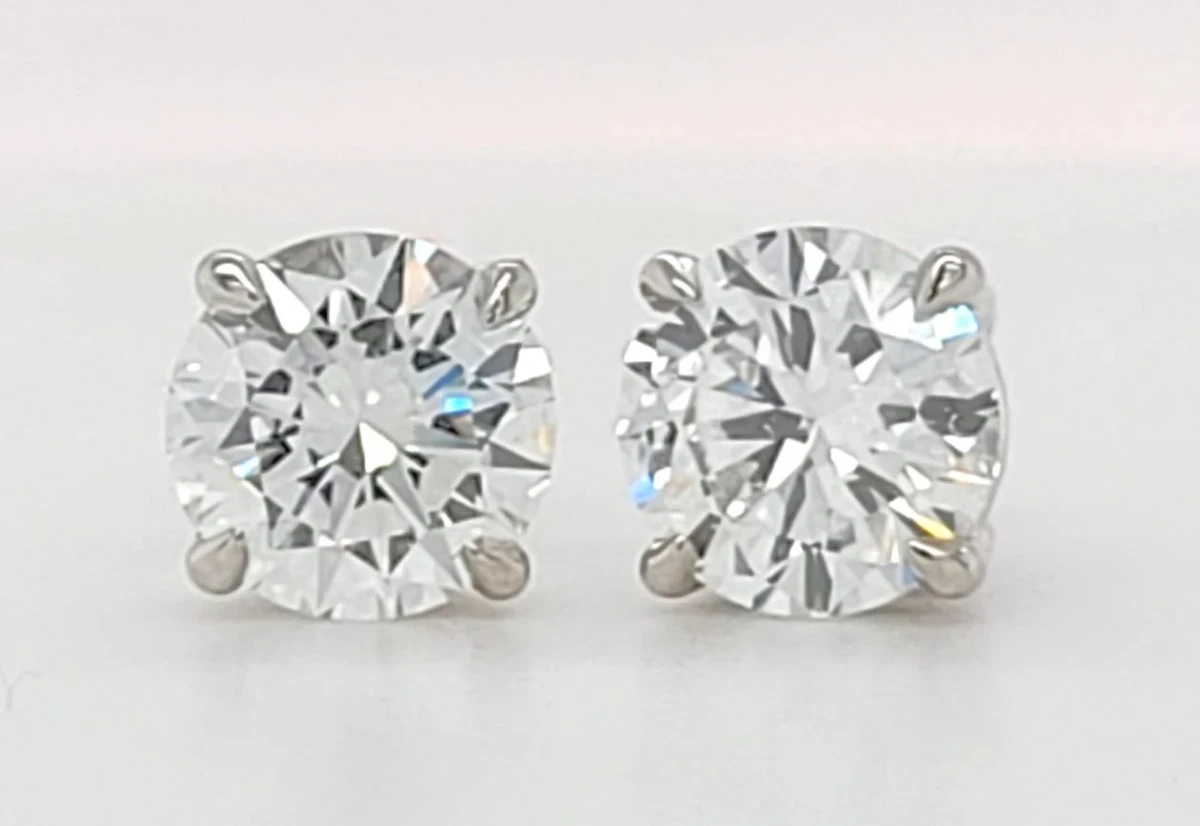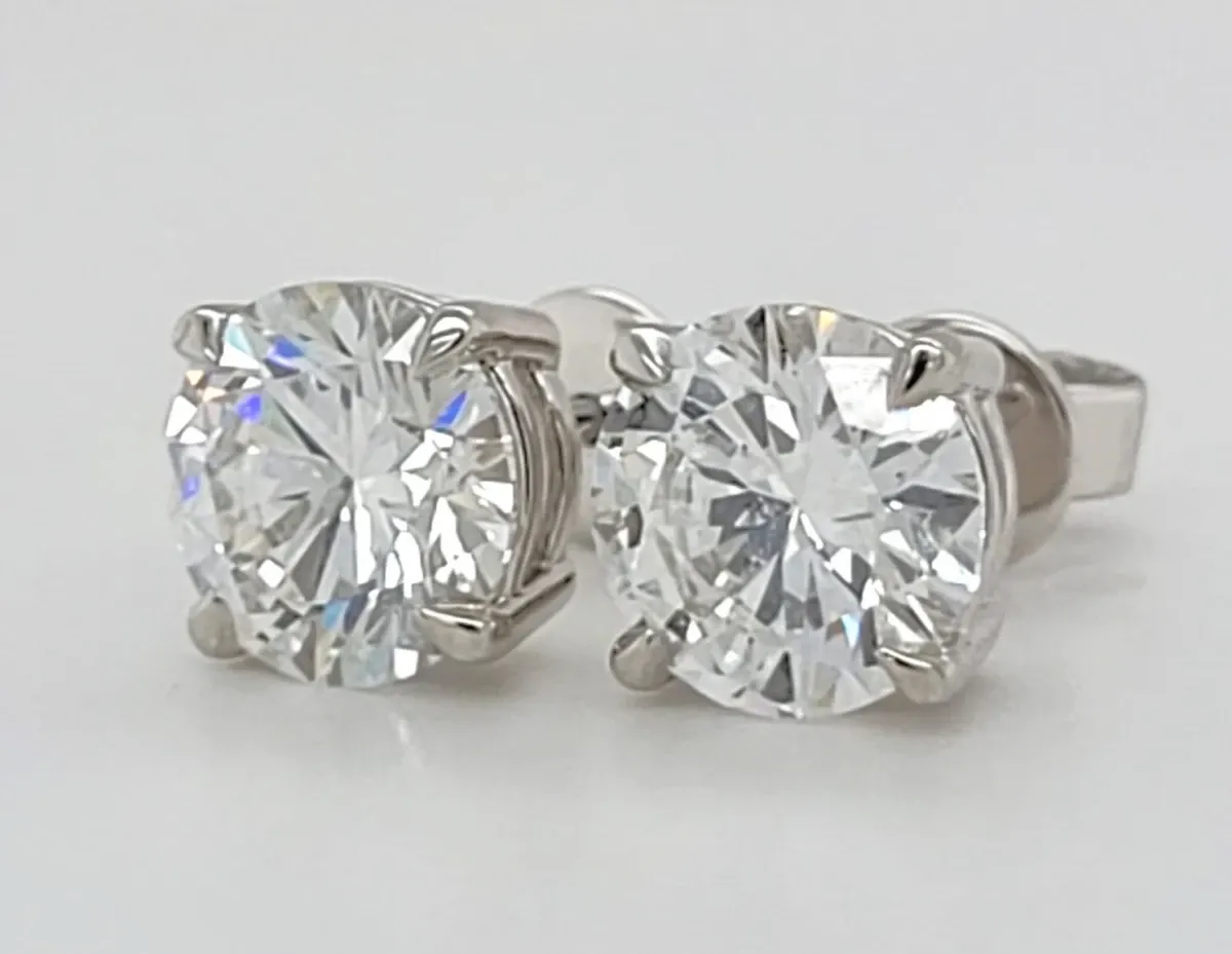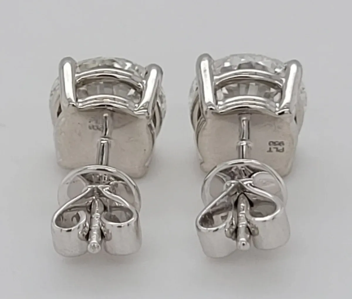 4.03ct Lab Grown Diamond & Platinum Solitaire Stud Earrings – 5.0g Make a bold and elegant statement with these stunning 4.03ct lab grown diamond solitaire stud earrings, set in luxurious solid platinum. Perfectly crafted for brilliance and durability, these earrings showcase exceptional sparkle and clarity, offering the timeless appeal of classic solitaire studs with a modern, ethical twist. Weighing 5.0 grams, these platinum earrings combine strength and sophistication, making them ideal for special occasions or elevating everyday style. The lab created diamonds deliver remarkable fire and brilliance, all while being a sustainable and responsible choice.
