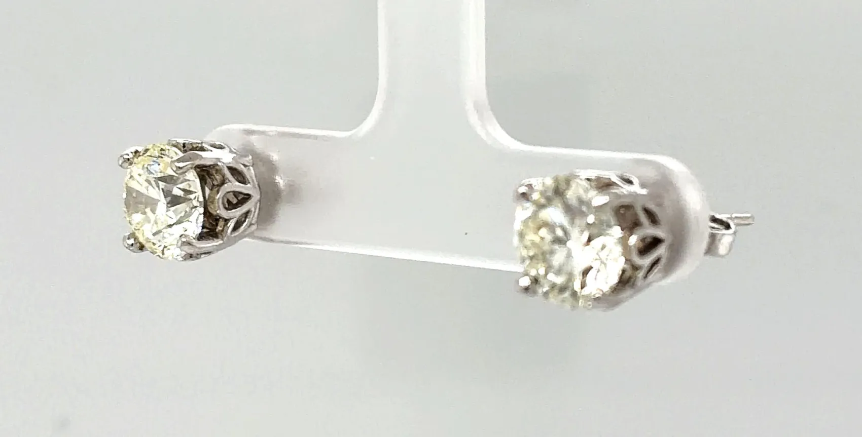 Exuding timeless sophistication, these exceptional diamond solitaire stud earrings showcase a remarkable combined diamond weight of 4.04 carats. Each diamond is expertly selected and precision set to maximise brilliance, fire, and clarity, creating a striking yet elegant statement. Crafted in luxurious 18ct white gold, the classic solitaire setting enhances the natural beauty of the diamonds while offering enduring strength and refinement. With a substantial total weight of 4.9 grams, these earrings provide a reassuringly premium feel and superb comfort when worn. Perfect for those who appreciate fine craftsmanship and understated luxury, these diamond stud earrings are a true investment piece—ideal for special occasions, milestone celebrations, or as an exquisite everyday indulgence.