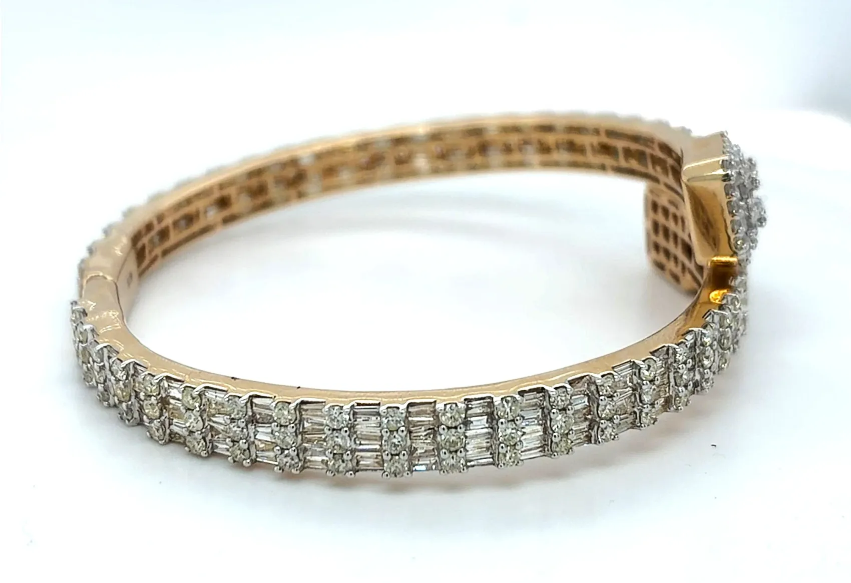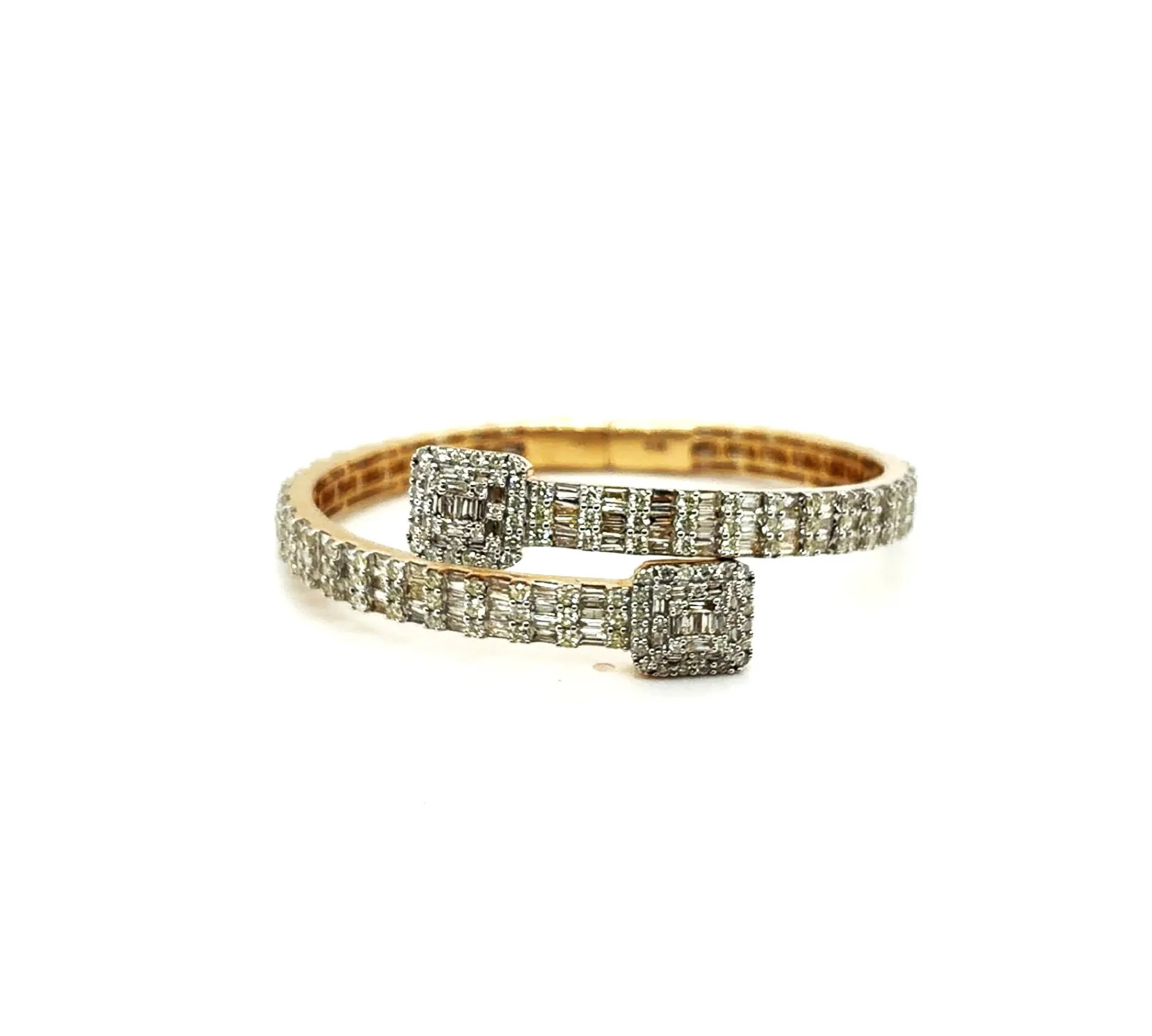 4.50ct Diamond & 14ct Gold Cross Over Bangle – 26.3g Make a bold and elegant statement with this cross over bangle featuring 4.50ct of brilliant-cut diamonds set in 14ct gold. Weighing 26.3g, this luxurious piece combines substantial presence with sophisticated design, perfect for special occasions or refined everyday wear. The sparkling diamonds are beautifully arranged along the crossover design, catching light from every angle and creating a dazzling effect. Expertly crafted in durable 14ct gold, this bangle offers both style and lasting quality, making it a timeless addition to any jewellery collection. Features: