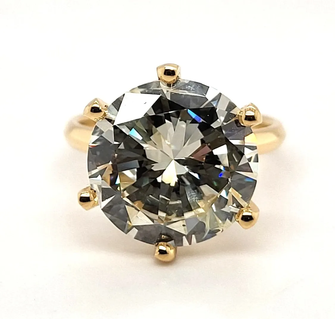 7.75ct Diamond & 18ct Gold Solitaire Ring – 5.4g Make a bold statement with this 7.75ct diamond solitaire ring crafted in luxurious 18ct gold. Weighing 5.4g, it offers a striking yet comfortable fit, perfect for those who appreciate elegance and sophistication. The dazzling 7.75ct diamond takes centre stage, beautifully highlighted by the warm glow of 18ct gold. Its classic solitaire design ensures that the gemstone remains the focal point, delivering timeless style that never goes out of fashion. Ideal for men or women, this ring combines luxury, brilliance, and enduring quality in a statement-making piece of jewellery. Features: