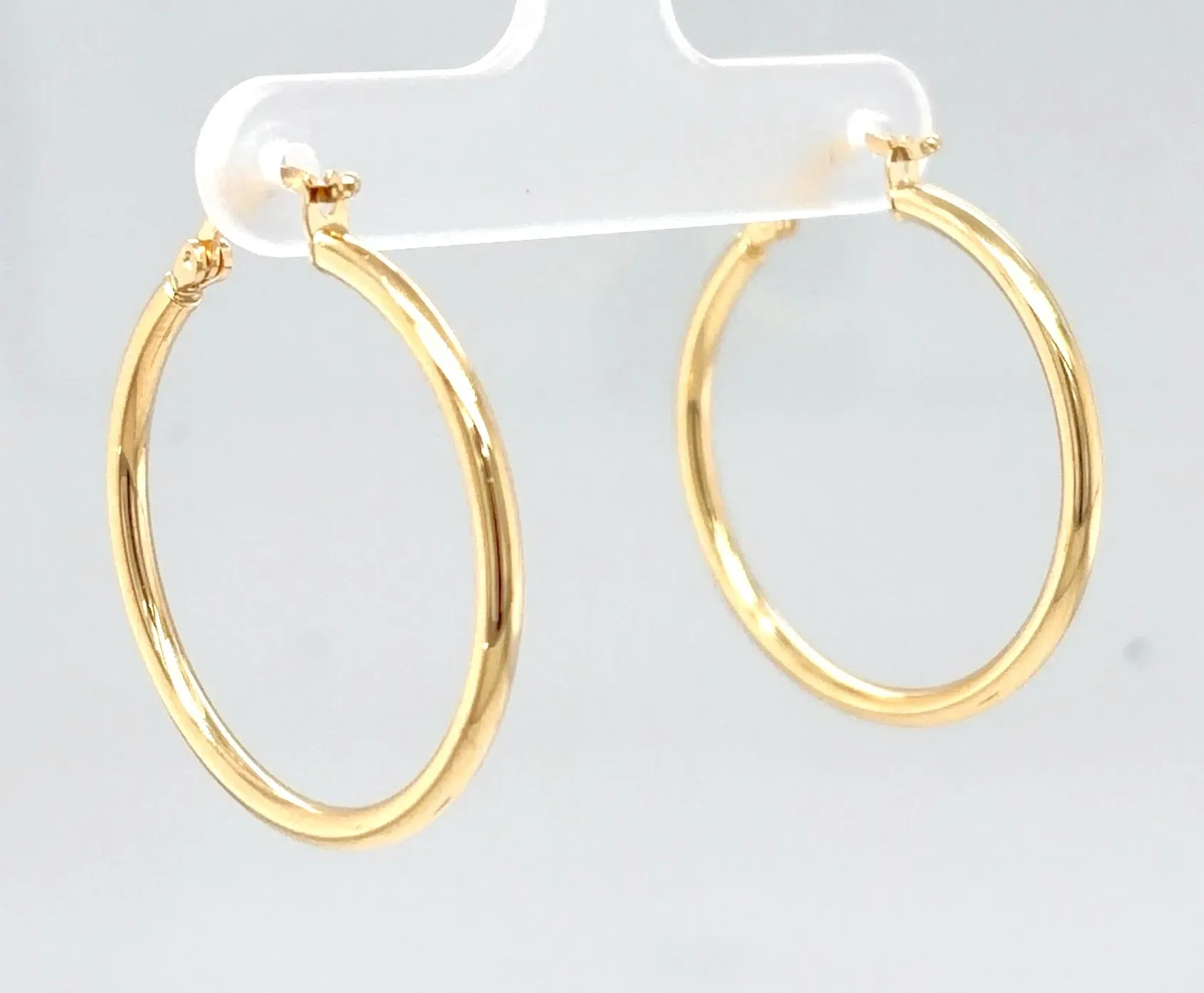 Add effortless everyday elegance to your jewellery collection with these lightweight 9ct gold hoop earrings. Measuring 29mm in diameter and 2.2mm in width, and weighing just 1.2g, they offer a comfortable, easy-to-wear design that’s perfect for daily styling. Their classic polished finish makes them versatile enough for both casual and dressy looks, while the medium size provides the ideal balance between subtle and statement. A timeless pair suited to any occasion. Features: