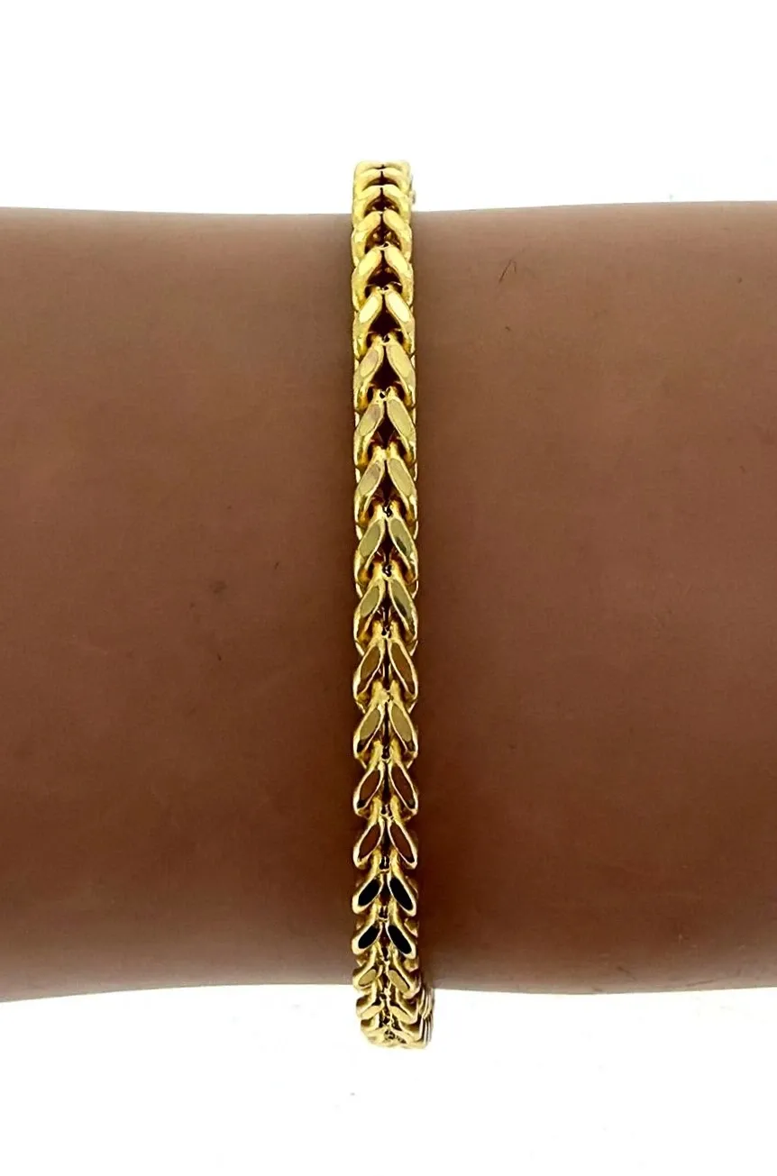 Elegant and refined, this 9ct Gold Fancy Spiga Bracelet adds a touch of sophistication to any look. Crafted from high-quality 9 carat yellow gold, the intricate 3.5mm spiga (wheat) link design offers both strength and style, with a luxurious polished finish that catches the light beautifully. Measuring 7.0 inches in length, it provides a comfortable and secure fit, perfect for everyday wear or special occasions. This timeless piece can be worn alone for understated elegance or layered with other bracelets for a modern look. Features: