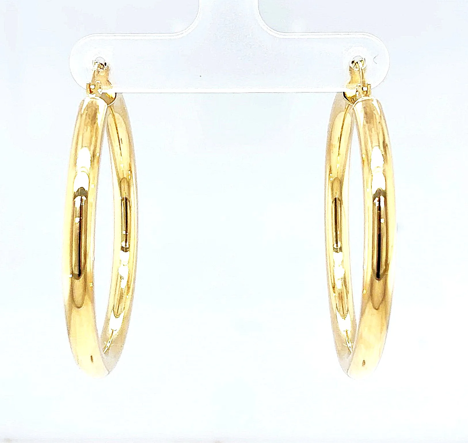 Make a bold statement with these 9ct gold hoop earrings, crafted for elegance and style. Measuring 43mm in diameter and 4.3mm in width, these substantial hoops (3.5g) offer a striking look while remaining comfortable for extended wear. Perfect for special occasions or as a standout everyday accessory, these versatile earrings can be worn alone or paired with other jewellery to create a layered, sophisticated look. Features: