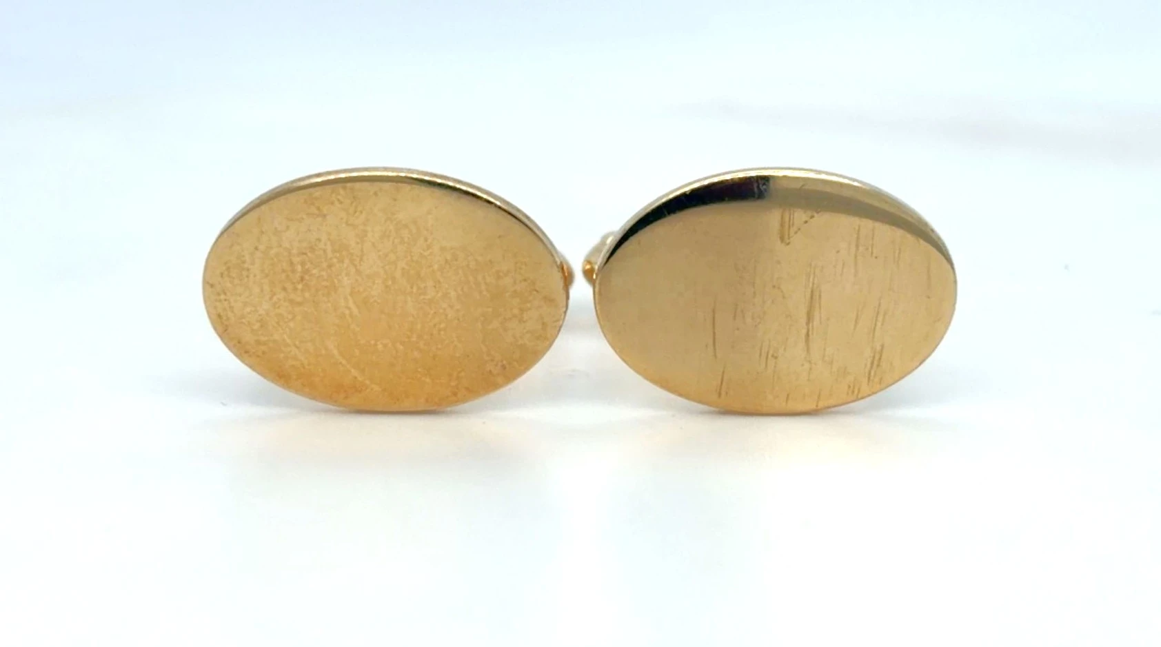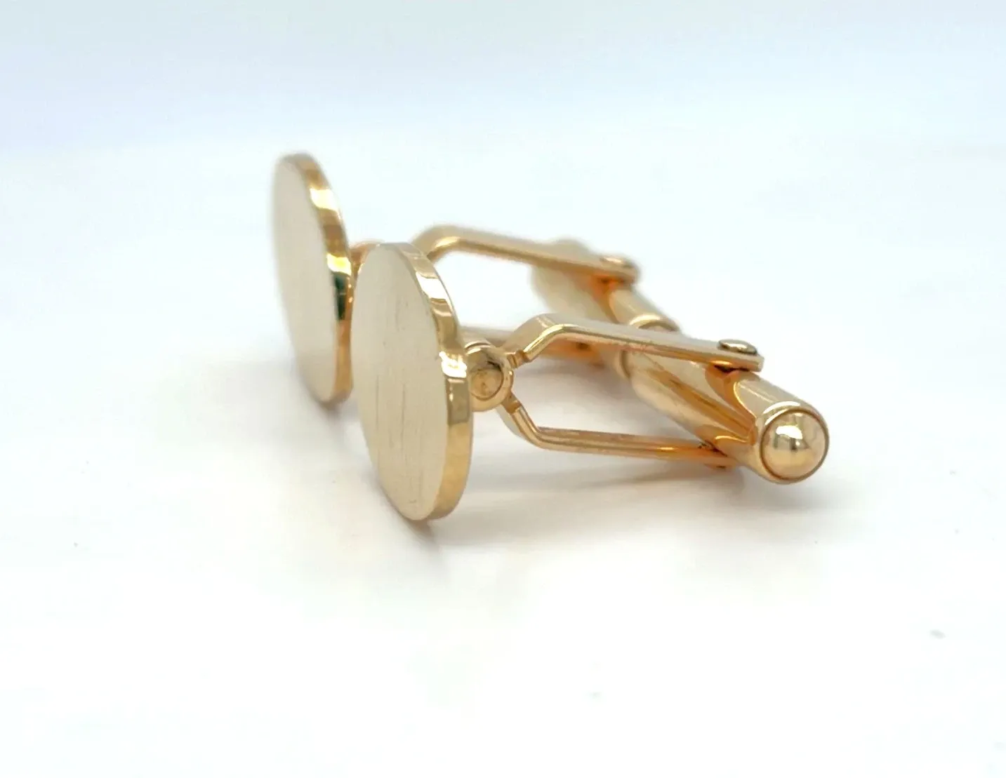 Add a touch of timeless sophistication to your formal attire with these 9ct gold hinged oval cufflinks. Expertly crafted from rich 9ct yellow gold, their sleek oval design combines classic elegance with modern refinement. Measuring 18.2mm x 12.7mm and weighing 8.8g, these cufflinks offer a substantial feel without compromising comfort. The hinged mechanism ensures a secure and effortless fit, making them ideal for business meetings, weddings, or special occasions. Details: