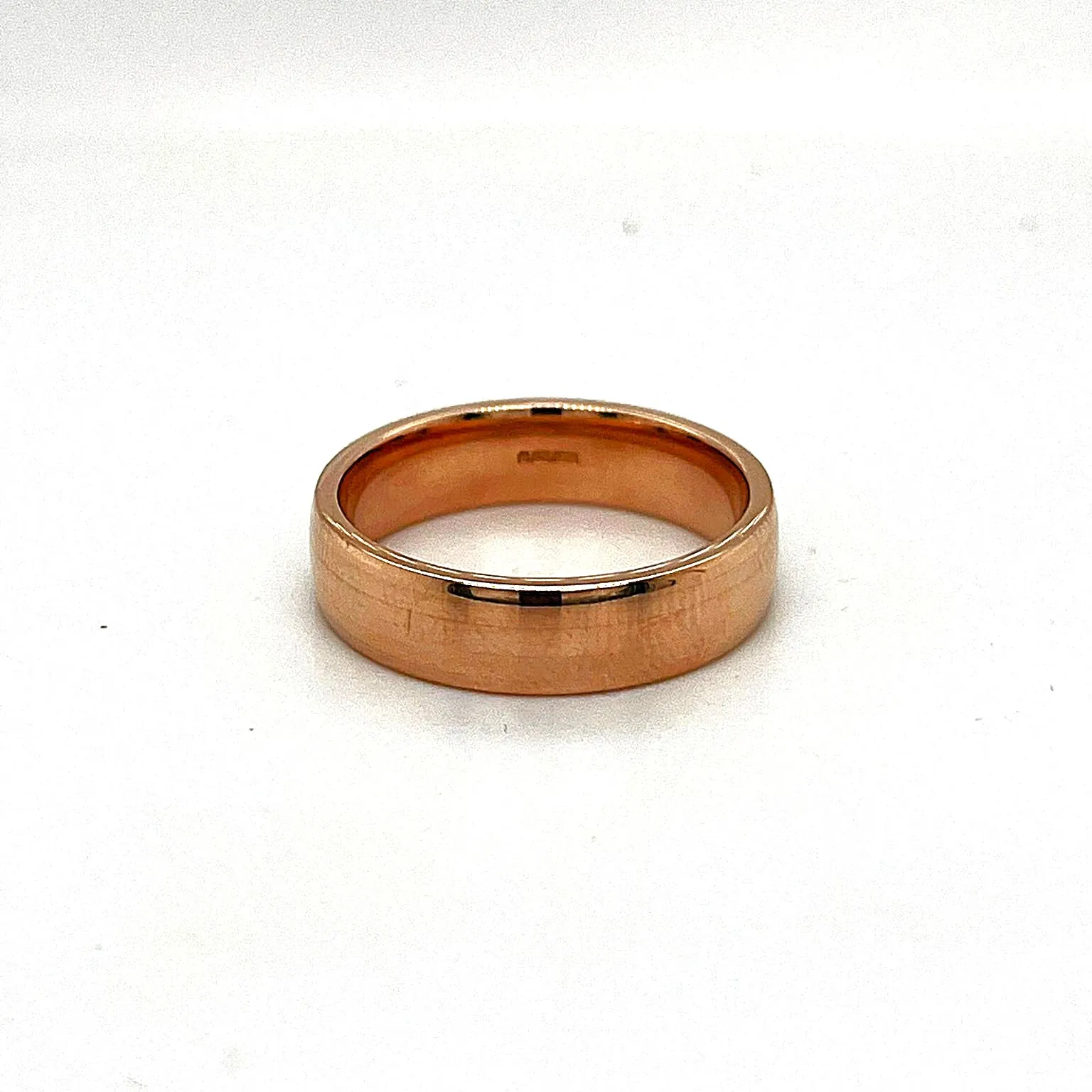 9ct Rose Gold 6mm Gents Slight Court Wedding Band – 6.7g A distinguished symbol of commitment, this 6mm gents slight court wedding band is crafted in warm 9ct rose gold, offering a contemporary yet timeless appeal. Weighing 6.7 grams, it provides a substantial feel while remaining comfortable for everyday wear. The subtle court profile ensures a smooth, rounded finish, combining elegance with durability. Its understated design makes it a versatile choice, perfect for modern grooms seeking a classic and stylish wedding band.