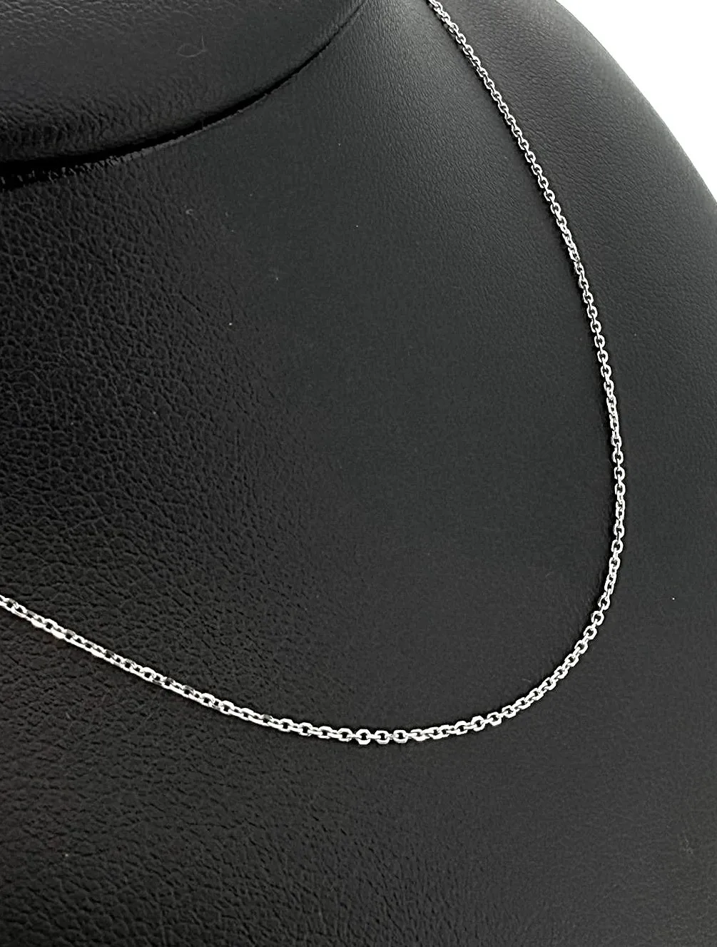 Add a touch of subtle elegance with this 9ct White Gold Traditional Curb Chain. Crafted from solid 9 carat white gold, it features 0.8mm fine curb links for a delicate, polished finish. Available in 16-inch or 18-inch lengths, this chain sits gracefully at the neckline, perfect for layering or wearing with a pendant. The secure spring ring clasp ensures reliability while maintaining a refined look, making it ideal for everyday wear. Features: