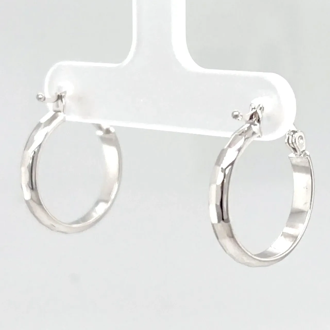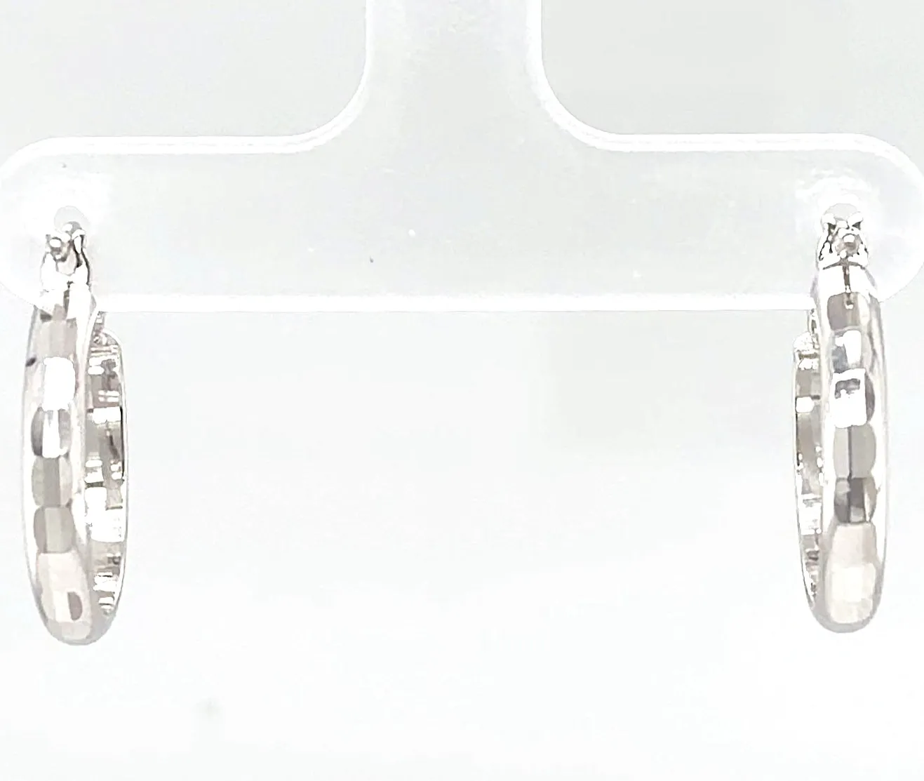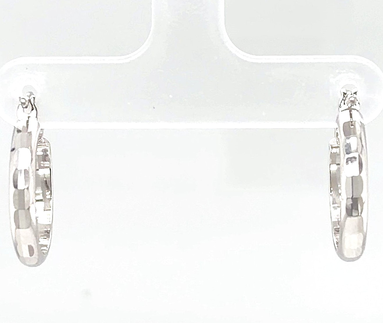 Add a sparkling touch to any outfit with these 9ct white gold diamond-cut hoop earrings. Measuring 17.7mm in diameter and 3.1mm in width, these lightweight hoops (1.5g) feature a diamond-cut finish that catches the light beautifully, creating subtle brilliance with every movement. Perfect for everyday wear or special occasions, these versatile earrings are designed to be worn alone or layered with other pieces for a chic, contemporary look. Features: