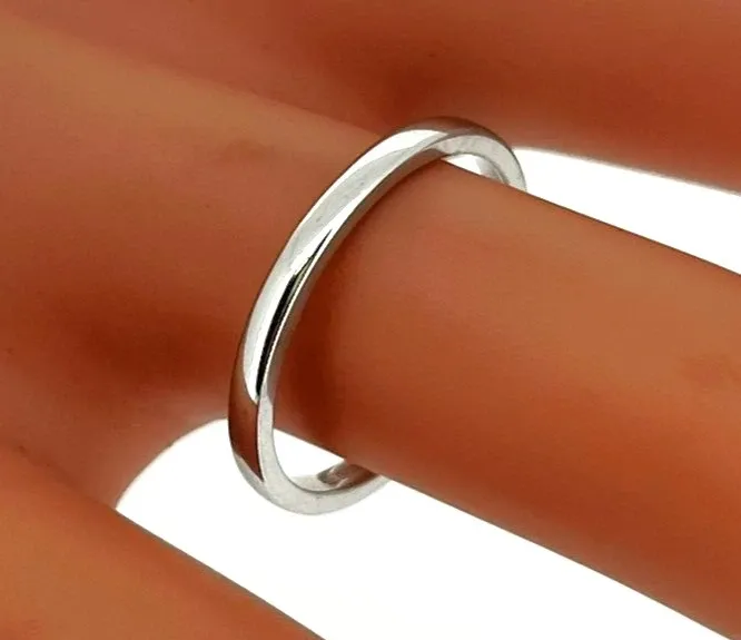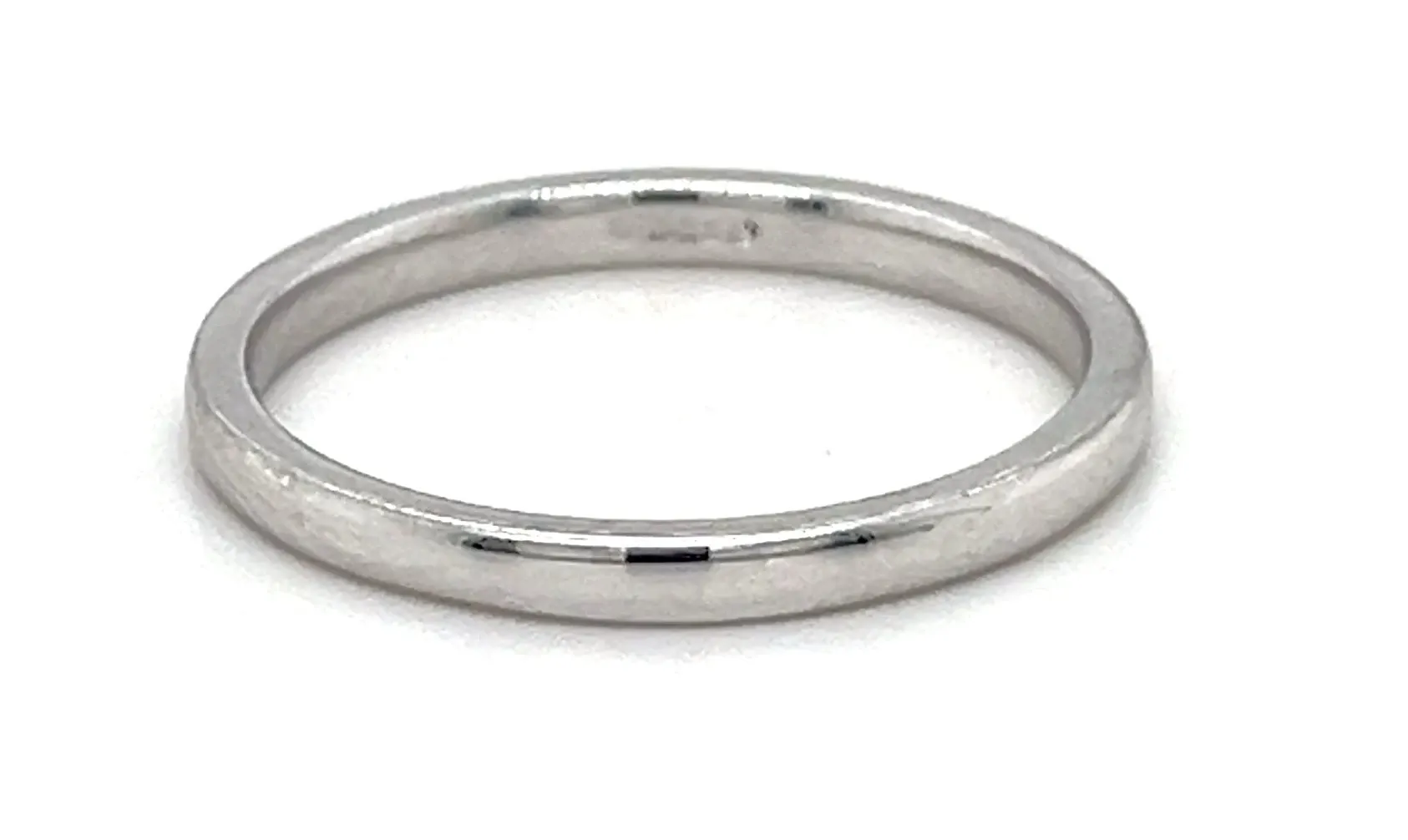 9ct White Gold 2mm Slight Court Wedding Band – 1.8g This delicate 2mm wedding band is crafted in 9ct white gold with a slight court profile, featuring a gently rounded exterior for a classic yet subtle design. Its slender profile makes it perfect for stacking with other rings or wearing alone for understated elegance. Weighing just 1.8 grams, the band is lightweight and comfortable for everyday wear. The polished finish enhances the natural brightness of white gold, giving it a timeless, luminous appearance. Details: