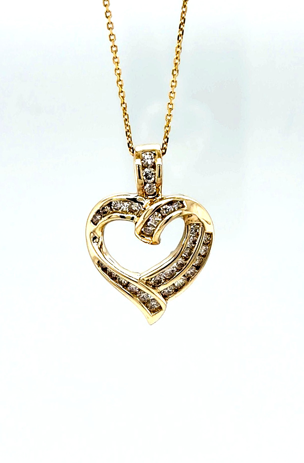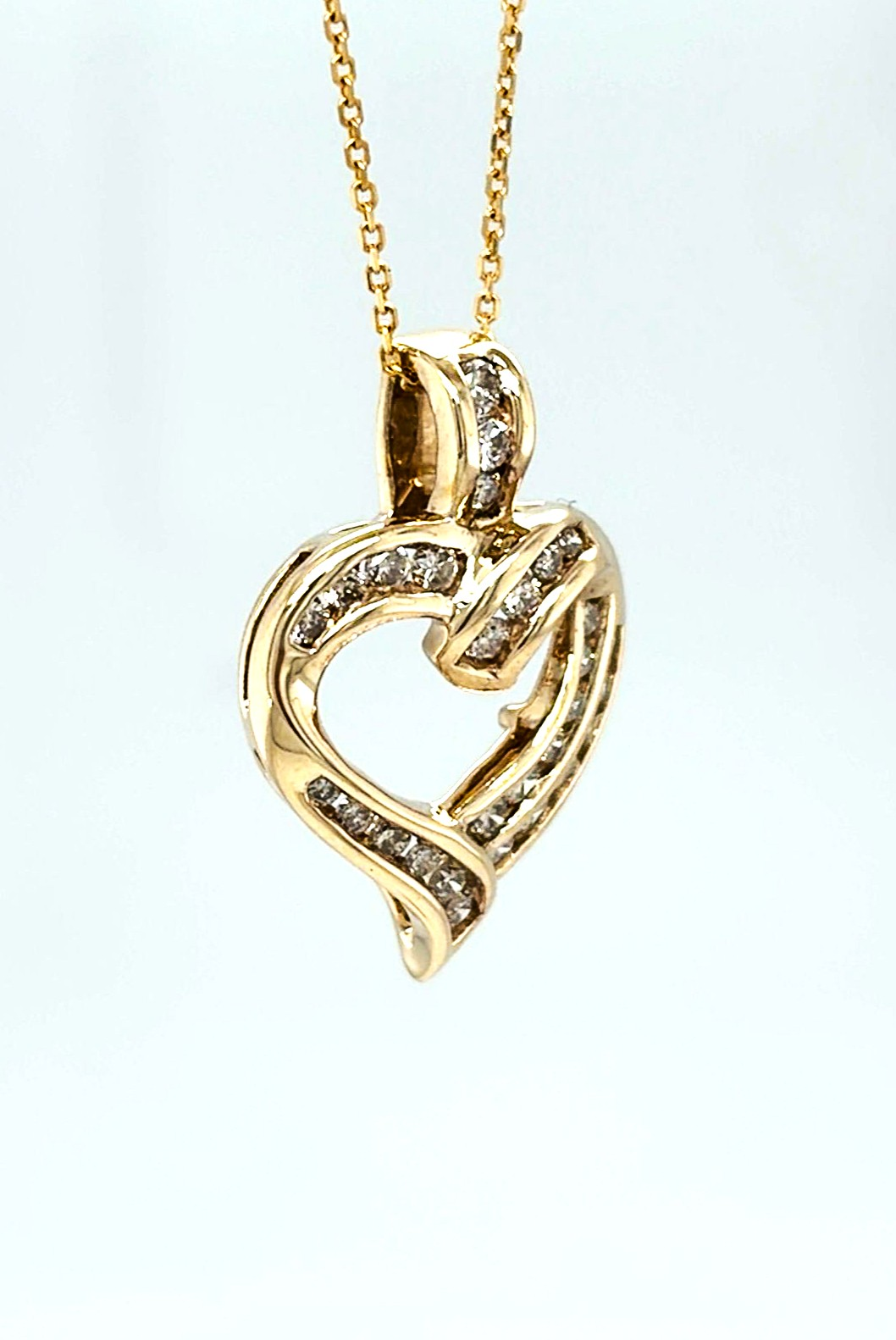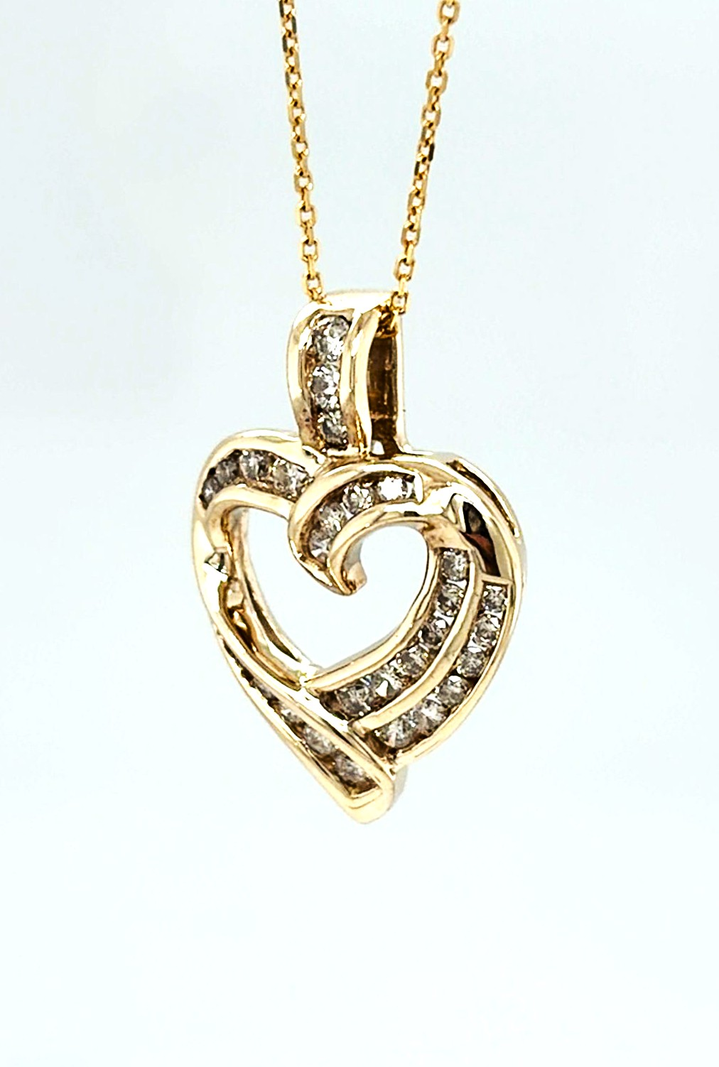 Romantic and radiant, this 0.50ct Diamond & 9ct Gold Heart Pendant is a beautiful symbol of love and elegance. Crafted in warm 9ct gold and weighing approximately 2.4 grams, this charming pendant features a graceful heart design adorned with sparkling diamonds totalling 0.50 carats. The carefully set diamonds enhance the curves of the heart, creating exceptional brilliance and eye-catching sparkle. Measuring approximately 22.3mm x 15.5mm x 4.0mm, the pendant offers a noticeable yet refined presence, making it perfect for both everyday wear and special occasions. Whether given as a meaningful gift or chosen as a timeless addition to your jewellery collection, this diamond heart pendant embodies sentiment and sophistication. Key Features: