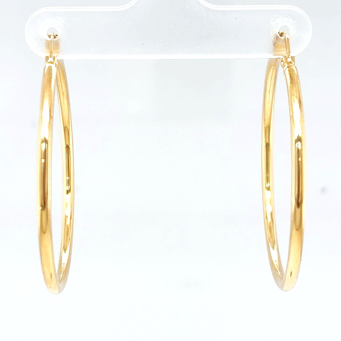 Classic and effortlessly stylish, these 9ct yellow gold hoop earrings offer a sleek, polished finish ideal for everyday wear or adding a touch of elegance to any outfit. Measuring 38mm in diameter and 2.3mm in width, they provide a bold yet lightweight look at just 1.6g. The smooth gold design makes them versatile and timeless, perfect for pairing with both casual and formal ensembles. With a secure hinged fastening, these hoops offer comfort and ease of wear throughout the day. A staple addition to any jewellery collection. Details: