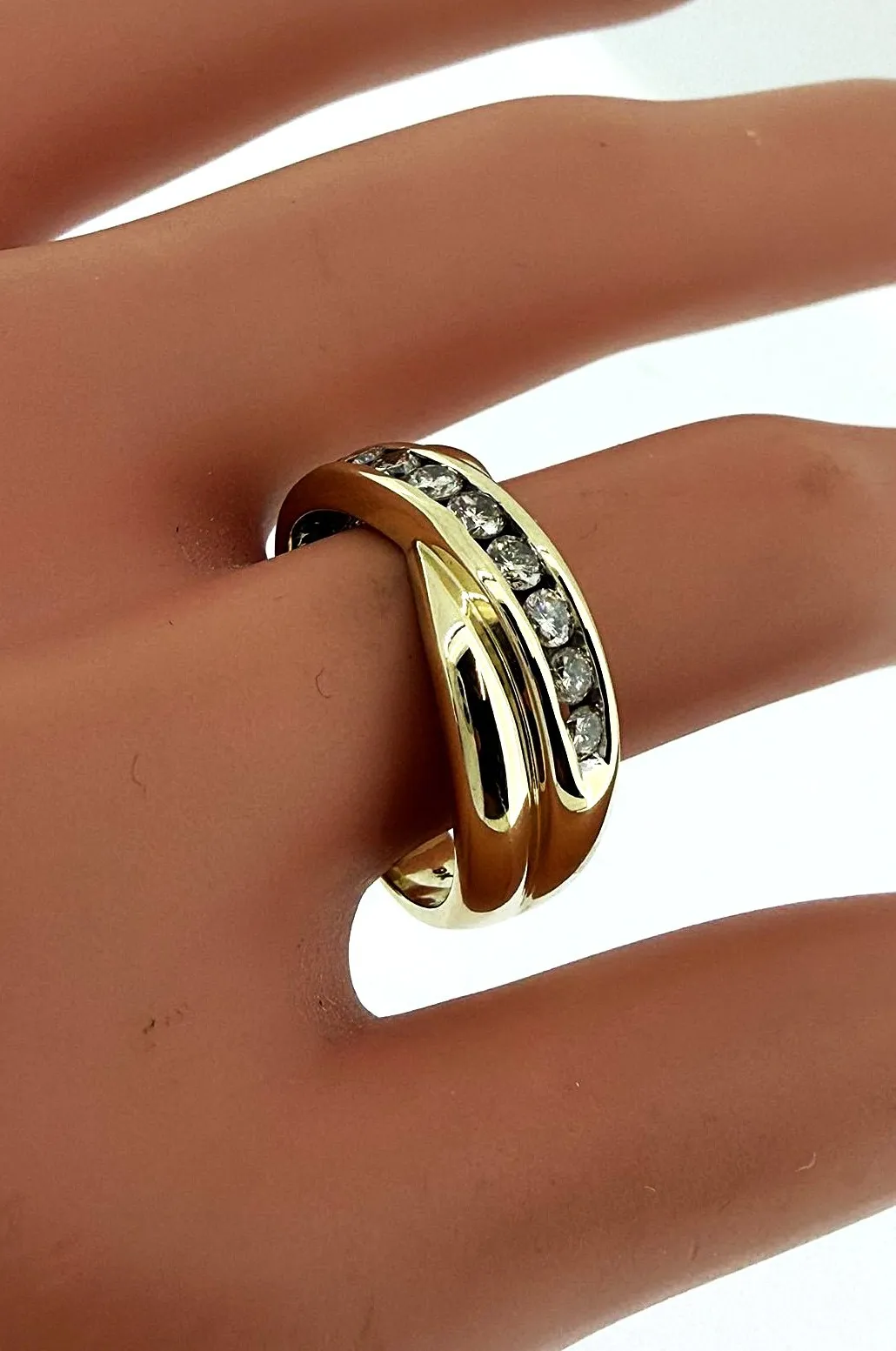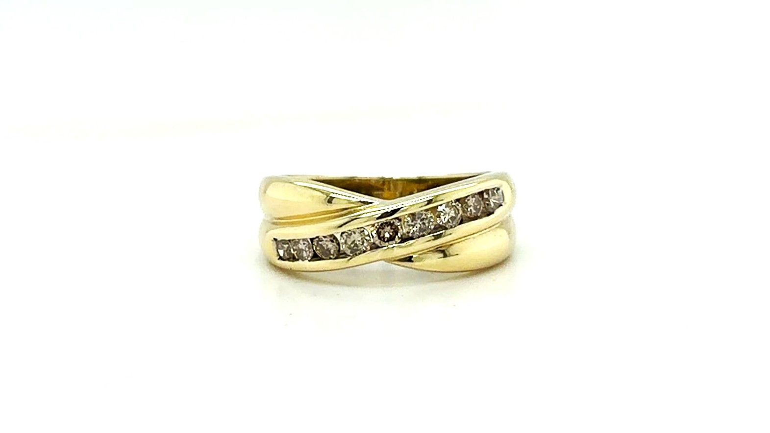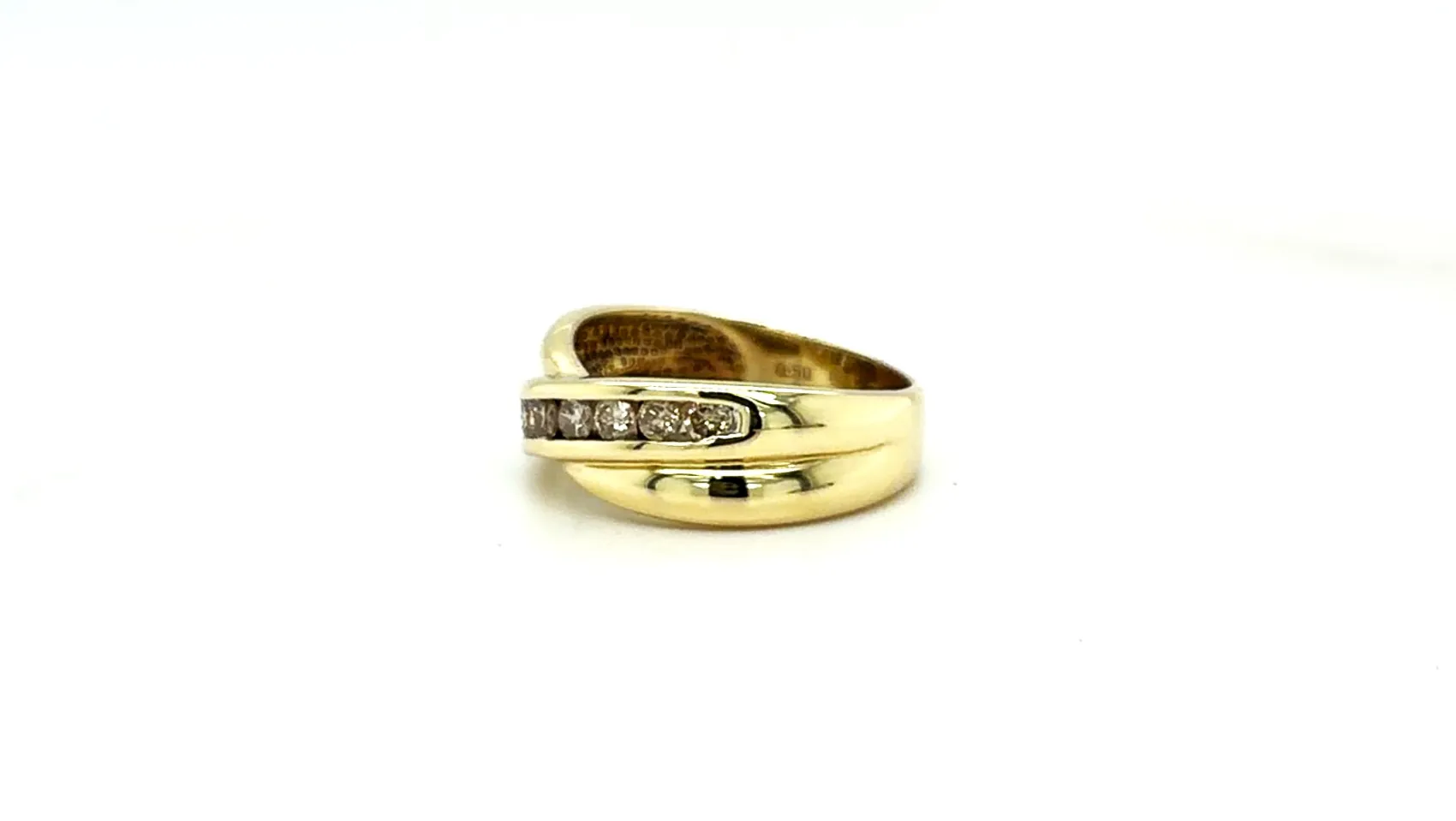 0.50ct Diamond & 9ct Gold 7.5mm Cross Over Band -4.0g
