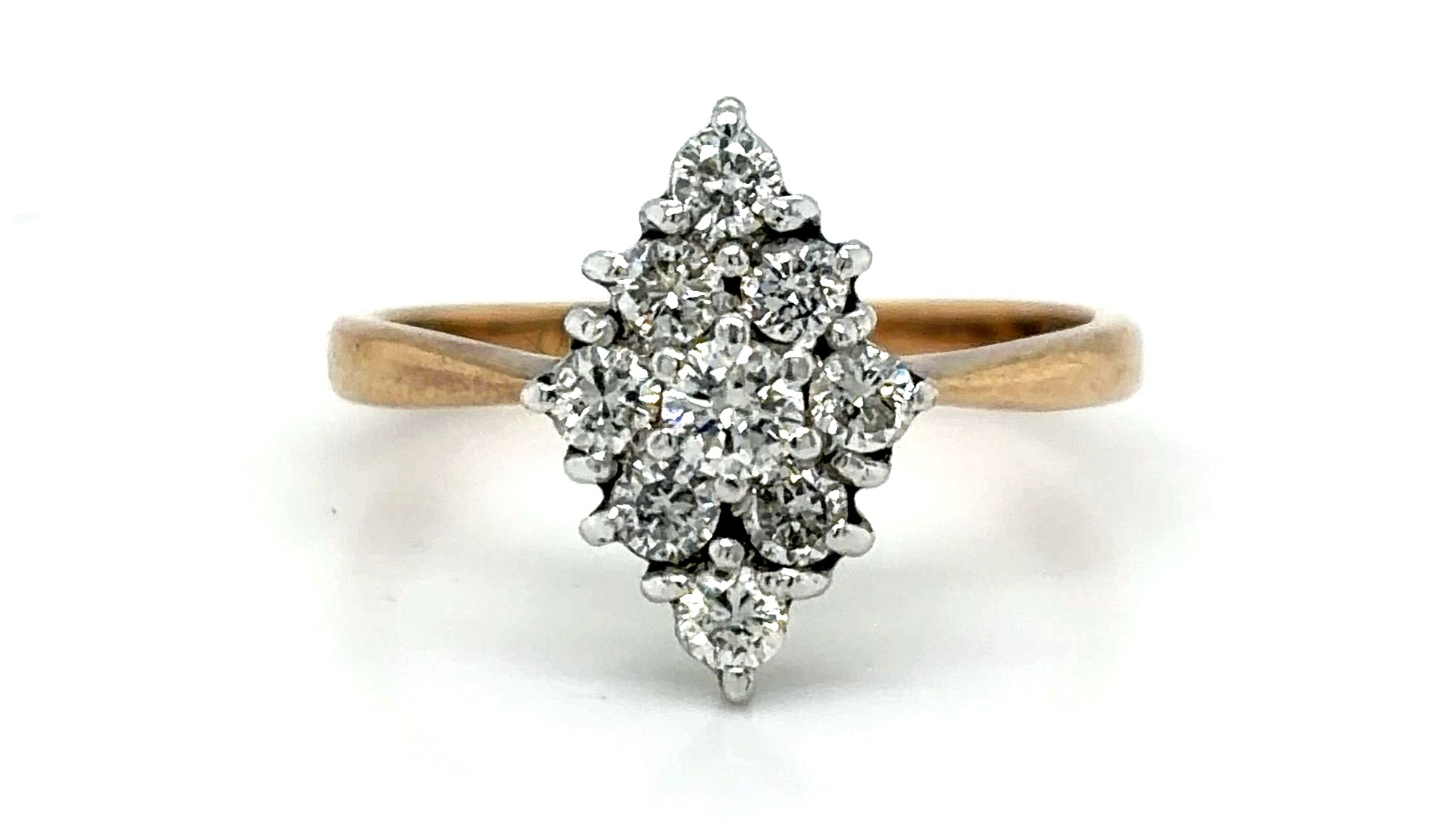 Elegant and sparkling, this 9ct gold cluster ring features a total of 0.50ct diamonds set in a classic cluster design. The multiple diamonds work together to create a dazzling effect, enhancing the brilliance and presence of the ring while maintaining a delicate and refined aesthetic. Crafted in 9ct gold and weighing 2.4 grams, this ring offers a lightweight yet luxurious feel. Perfect as a dress ring, anniversary gift, or versatile everyday jewellery piece, the cluster design ensures maximum sparkle and timeless appeal. A sophisticated and versatile diamond ring combining fine craftsmanship with classic style.