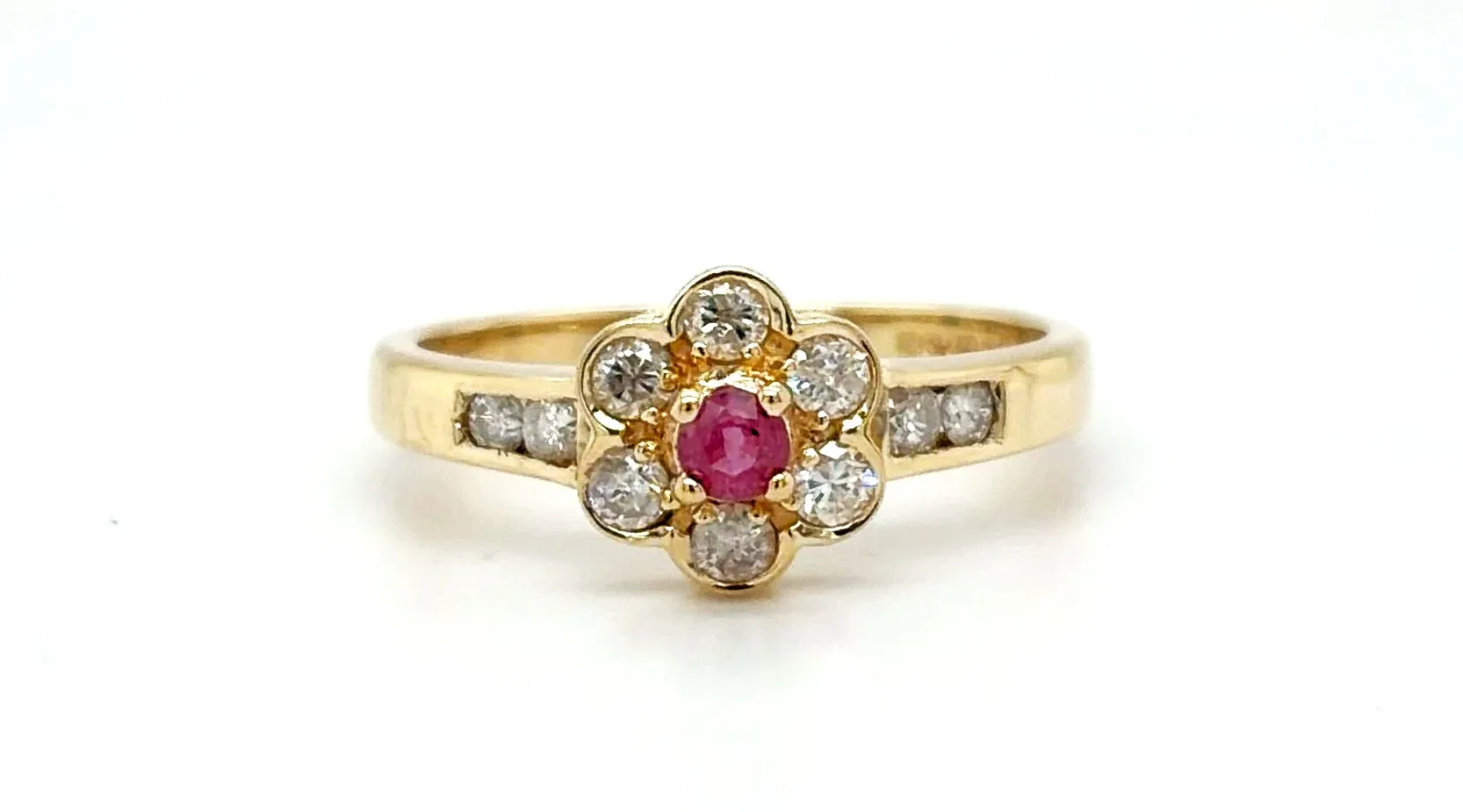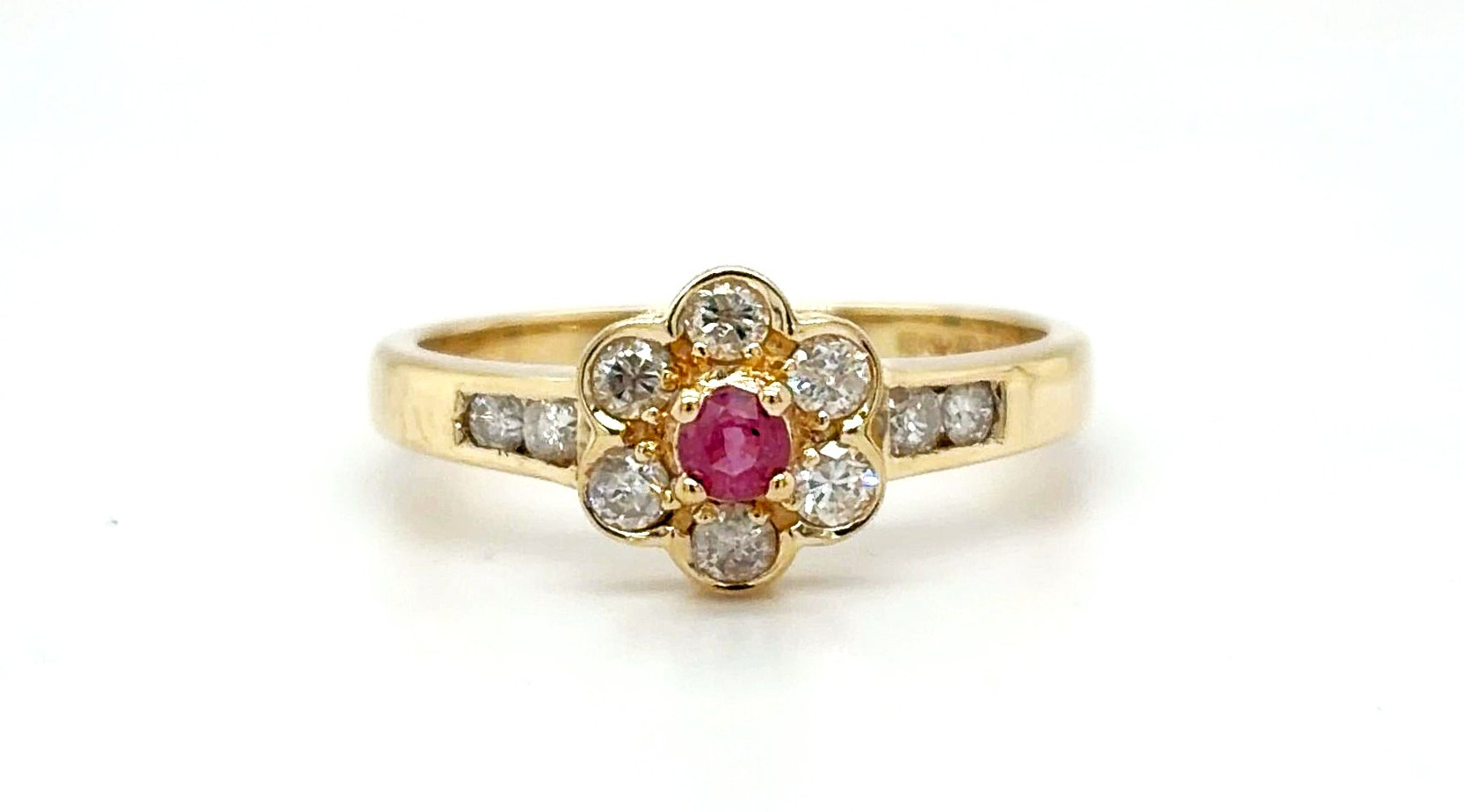 Delicate, vibrant and full of charm, this 0.10ct Ruby & 0.25ct Diamond Cluster Ring is a beautifully timeless piece. Crafted in warm 9ct gold and weighing approximately 2.0 grams, the ring offers a lightweight and comfortable fit, perfect for everyday elegance. At its centre sits a rich 0.10 carat ruby, celebrated for its deep red hue and timeless symbolism of passion and love. Surrounding the ruby is a sparkling cluster of diamonds totalling 0.25 carats, enhancing the centre stone with radiant brilliance. The classic cluster design creates the illusion of a larger centrepiece while maintaining a refined and feminine silhouette. Whether chosen as a meaningful gift, anniversary ring or elegant dress piece, this ruby and diamond ring adds a beautiful pop of colour and sparkle to any jewellery collection. Key Features: