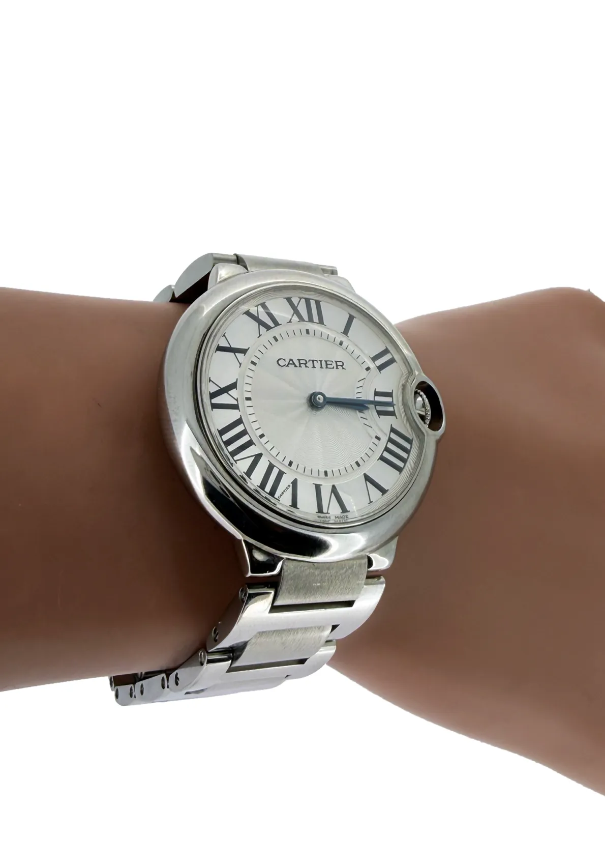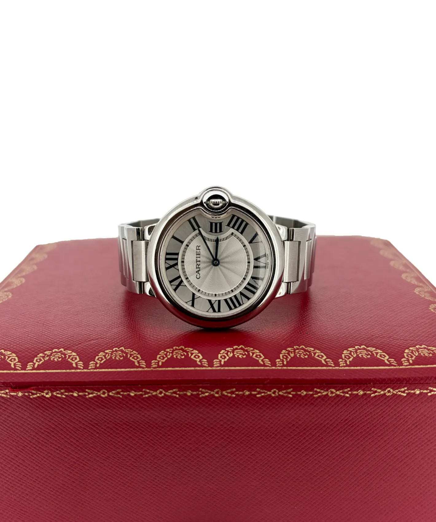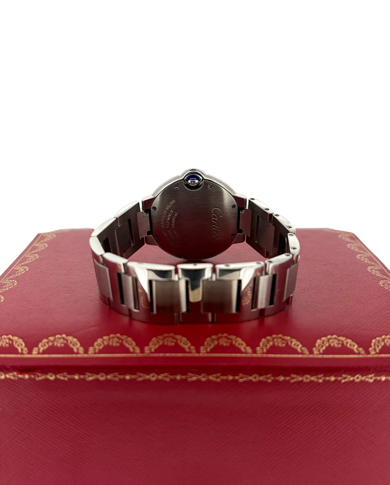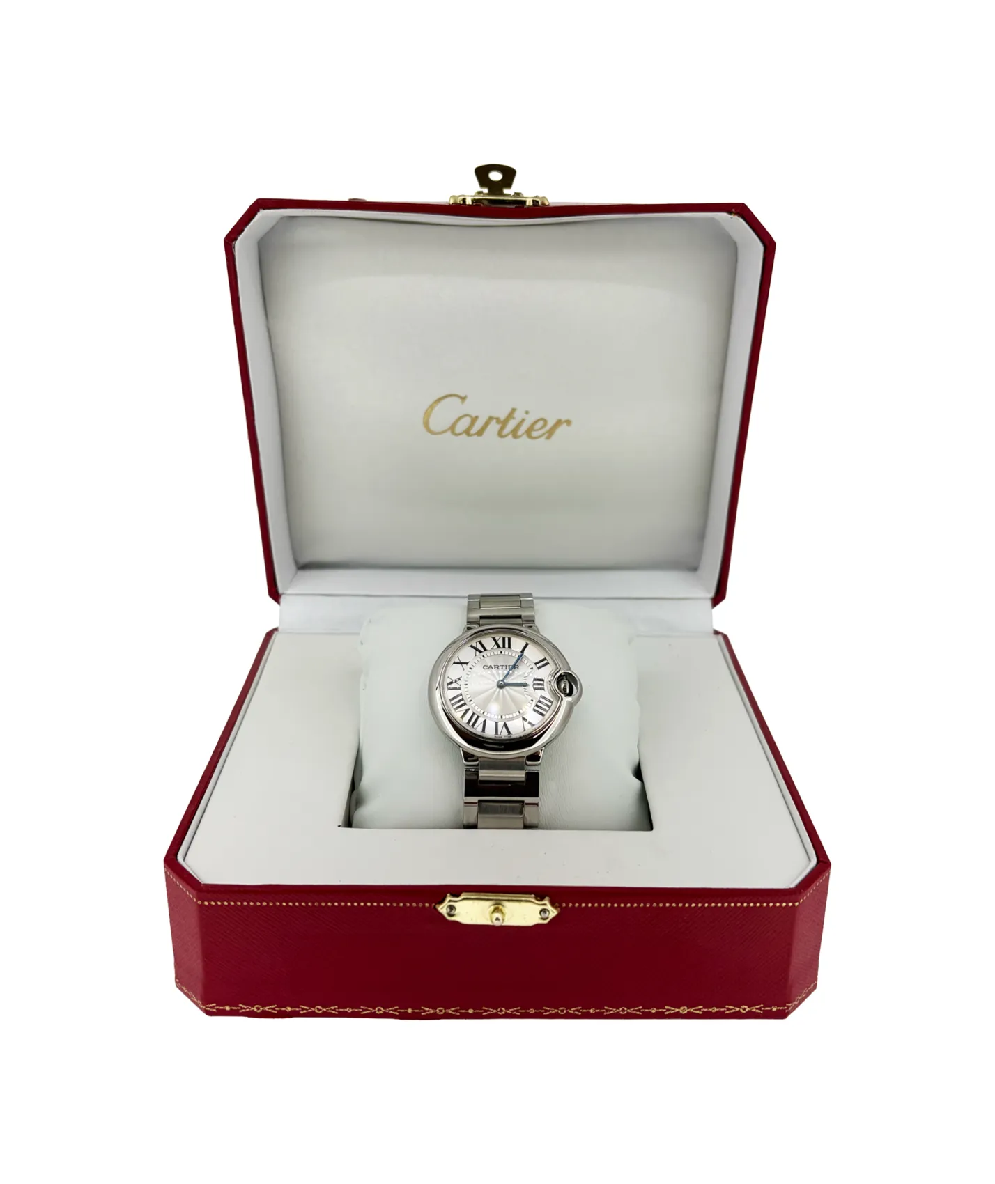 Cartier Ballon Bleu 36mm (2015, Box & Papers) in stainless steel, a timeless icon defined by its smooth, rounded case and elegant profile. Featuring Cartier’s signature blue cabochon crown and a beautifully balanced dial, this model reflects the brand’s unmistakable design heritage. Powered by a precise movement, it delivers dependable performance for everyday wear while maintaining a refined, luxurious feel. Finished with a durable stainless steel bracelet offering an adjustable, comfortable fit, this piece comes complete with original box and papers for added authenticity.