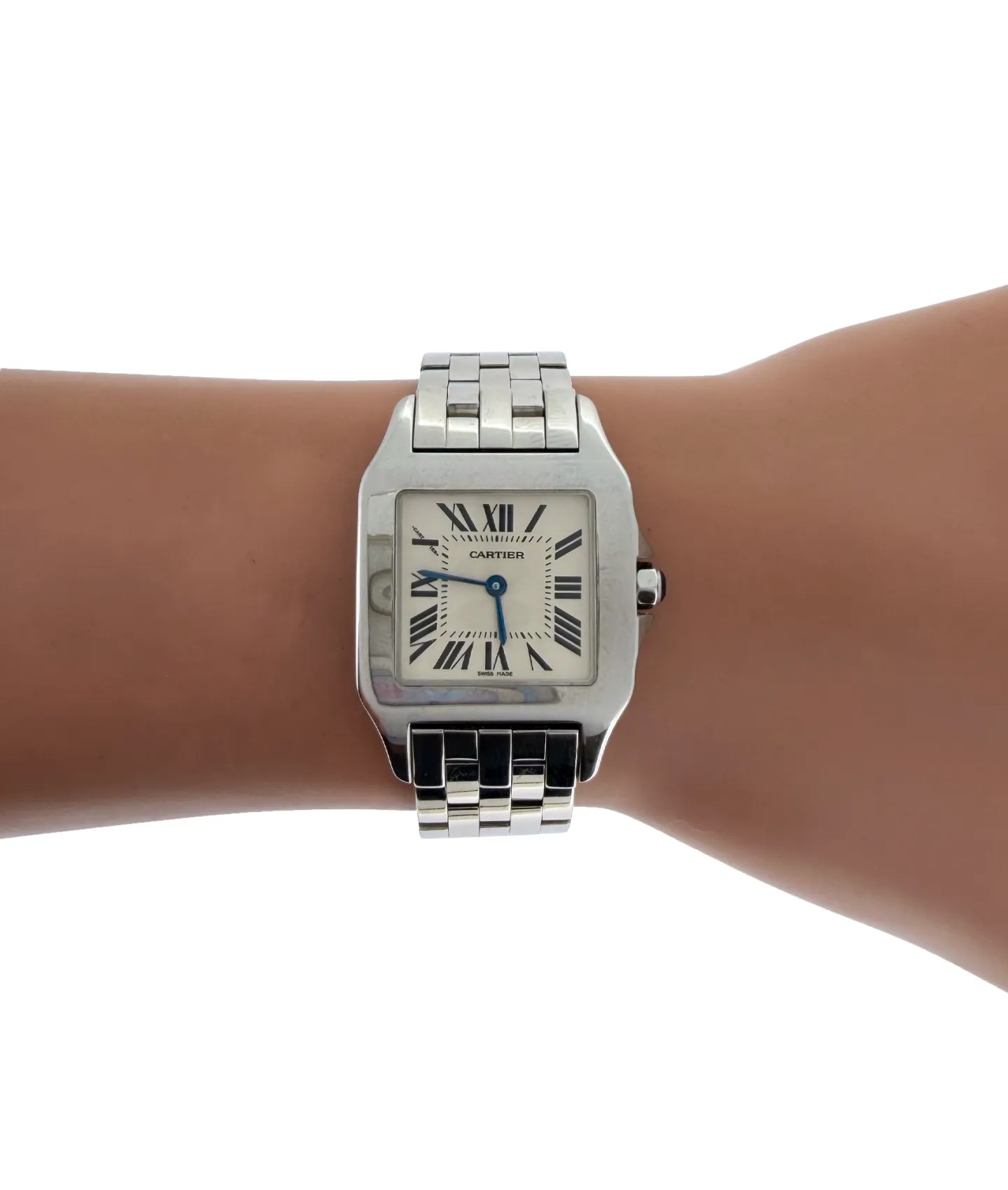 Cartier Demoiselle 26mm (Model 2701, circa 2017) in stainless steel, a refined and elegant timepiece designed with timeless femininity in mind. Featuring a sleek, minimalist dial and polished case, this model embodies Cartier’s signature sophistication in a compact, versatile form. Powered by a precise quartz movement for reliable everyday accuracy, it offers both practicality and understated luxury. Finished with a comfortable stainless steel bracelet and adjustable fit, this graceful watch is ideal for both daily wear and special occasions.