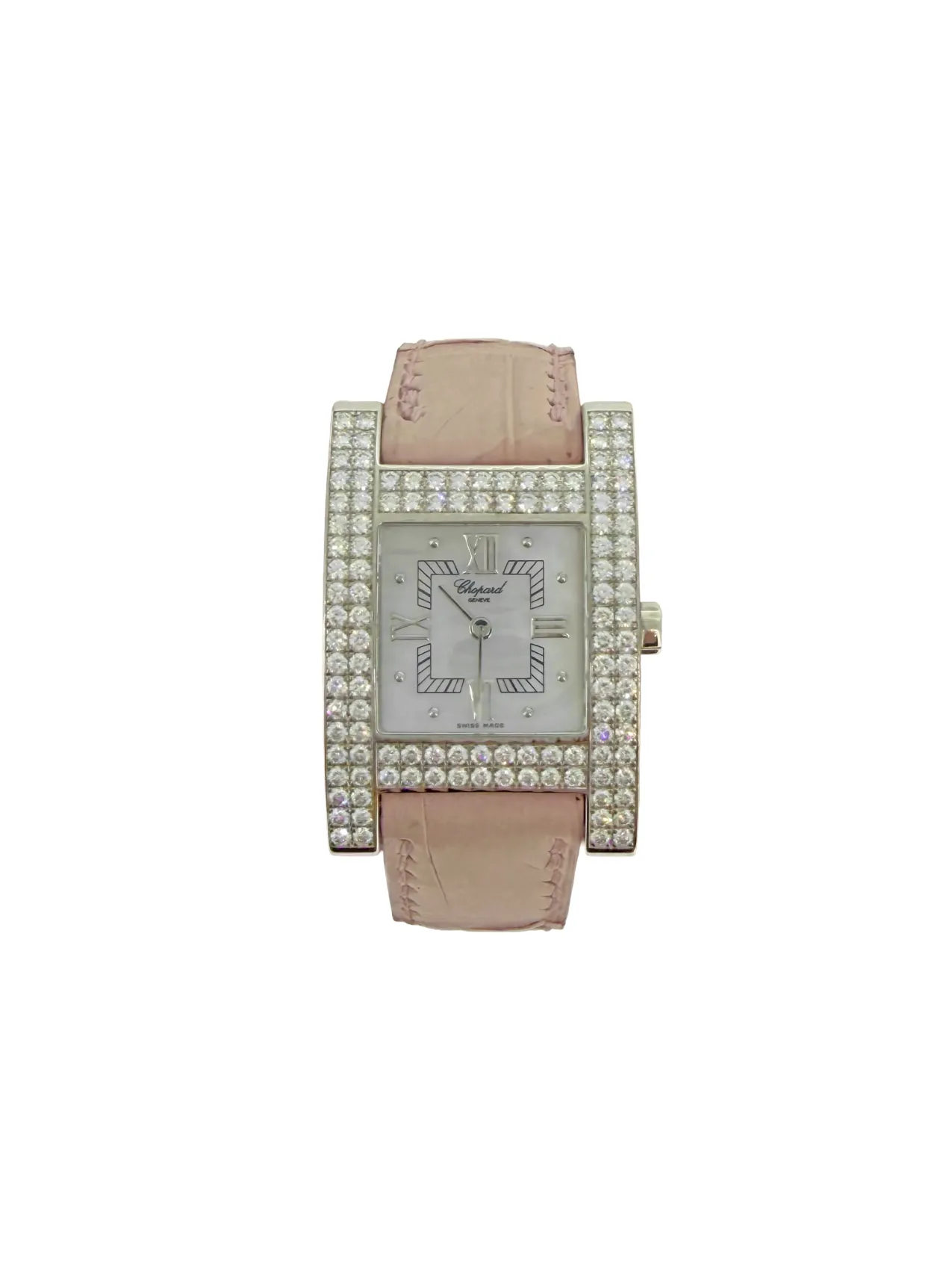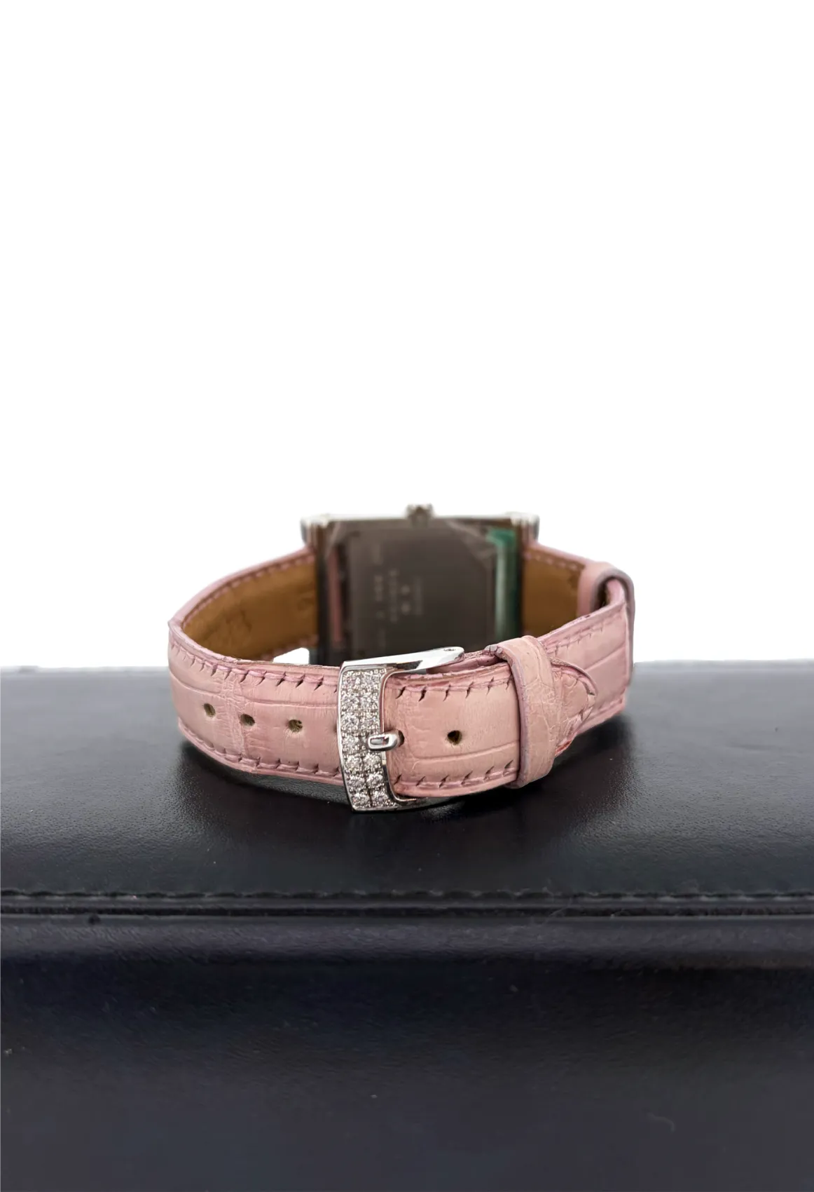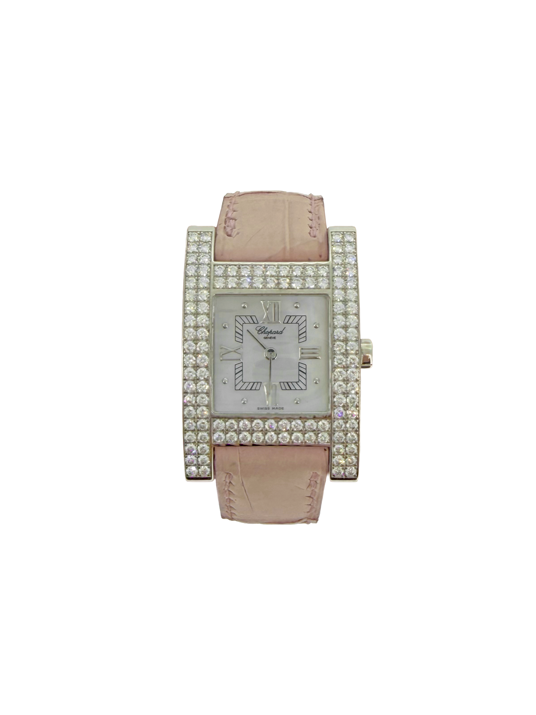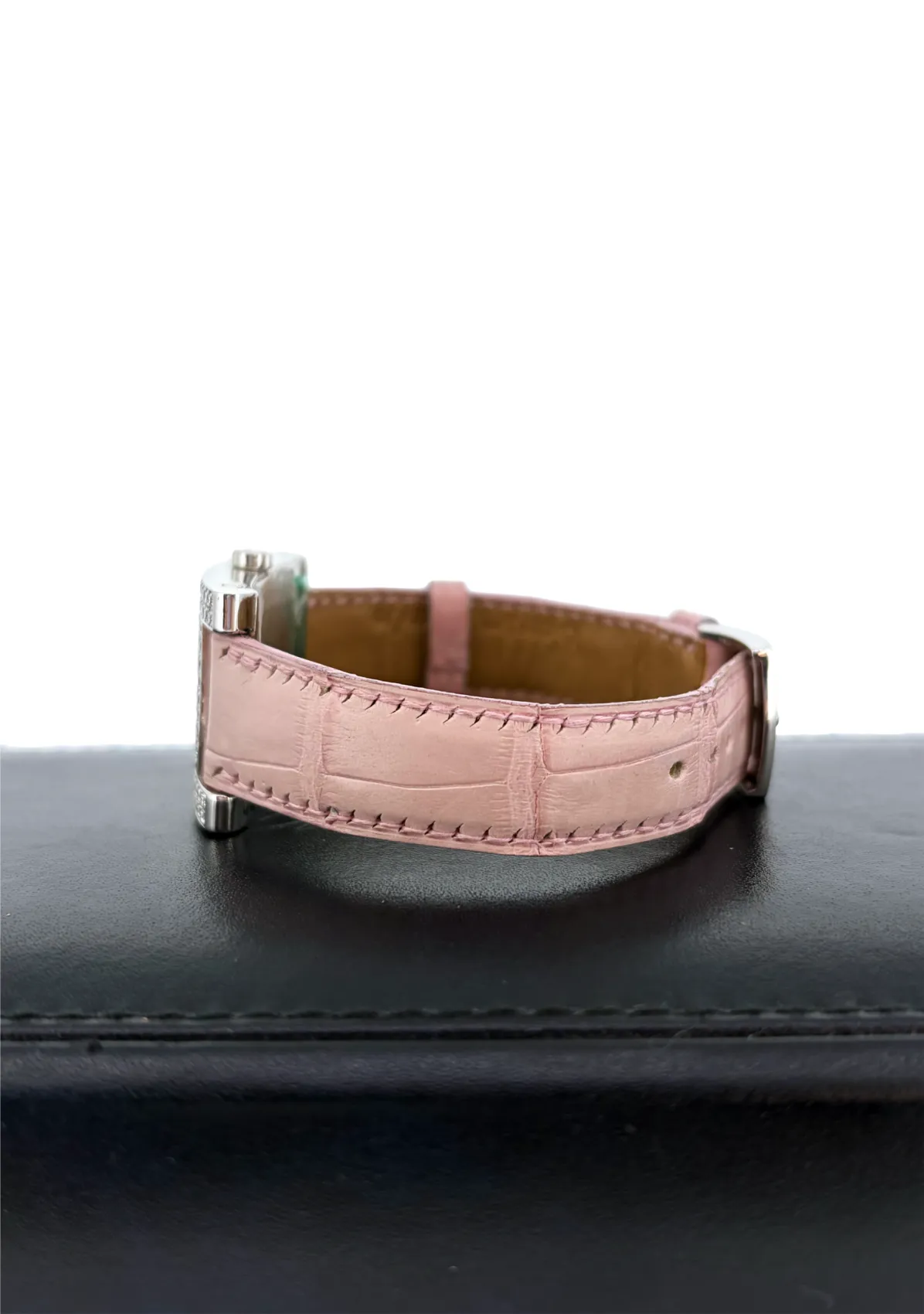 Elegant and distinctive, this Chopard Your Hour timepiece is a refined expression of modern luxury and timeless femininity. Crafted in lustrous 18ct White Gold and adorned with brilliant-cut Diamonds, it embodies Chopard’s signature blend of sophistication, craftsmanship, and jewellery-inspired design. The iconic Your Hour silhouette features soft, flowing lines that wrap elegantly around the wrist, creating a graceful and comfortable fit. The diamond-set detailing enhances its radiant presence, adding a subtle yet captivating sparkle suitable for both day and evening wear. Dating from circa 2015–2023, this piece reflects contemporary Chopard design while maintaining the enduring appeal of a true luxury classic. It is supplied with its SVC service card, offering added assurance of authenticity and care history. The bracelet is fully adjustable, ensuring a secure and tailored fit for the wearer. A beautifully feminine and versatile creation, this Chopard Your Hour watch is a standout addition to any fine watch or jewellery collection.
