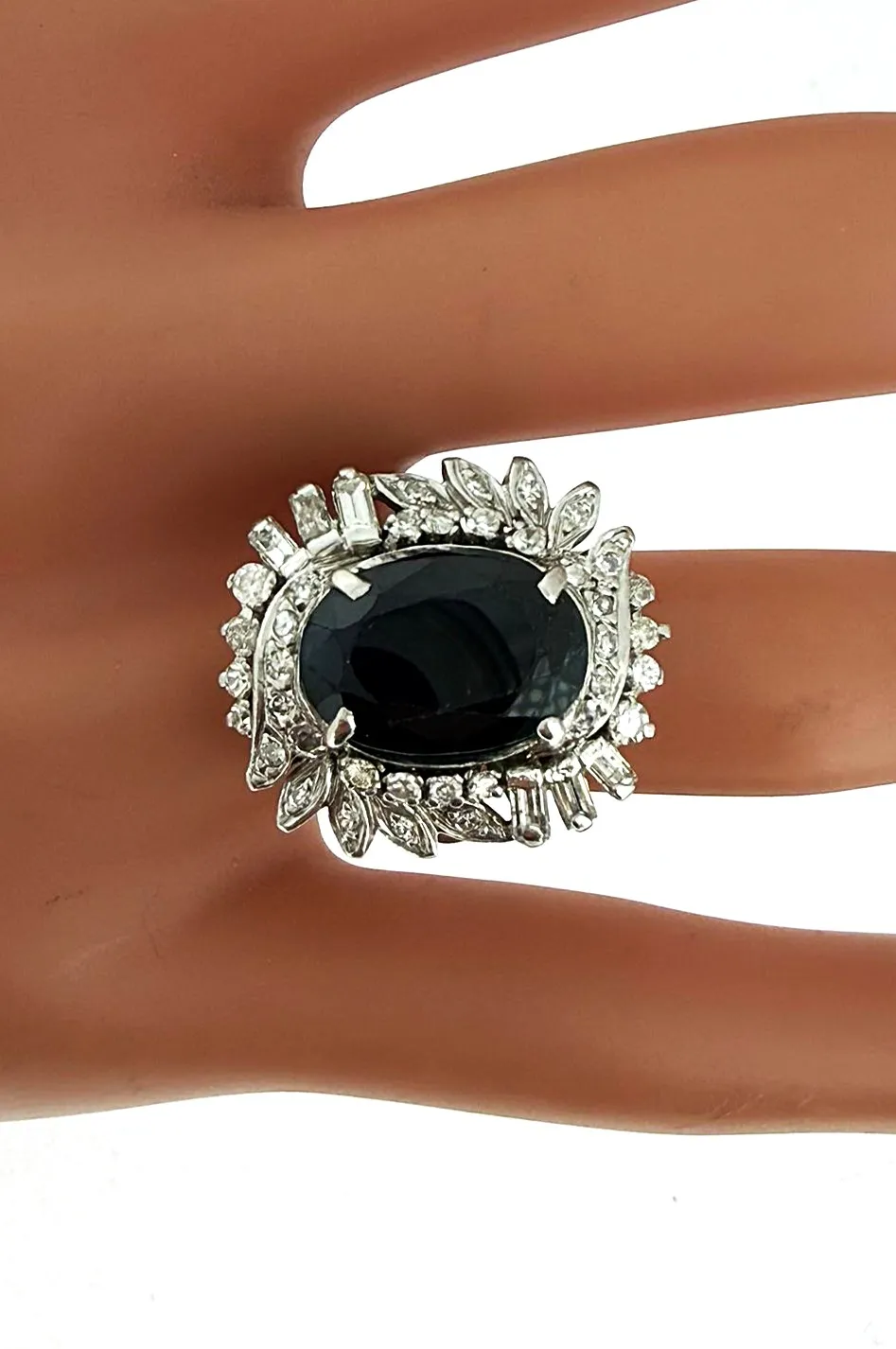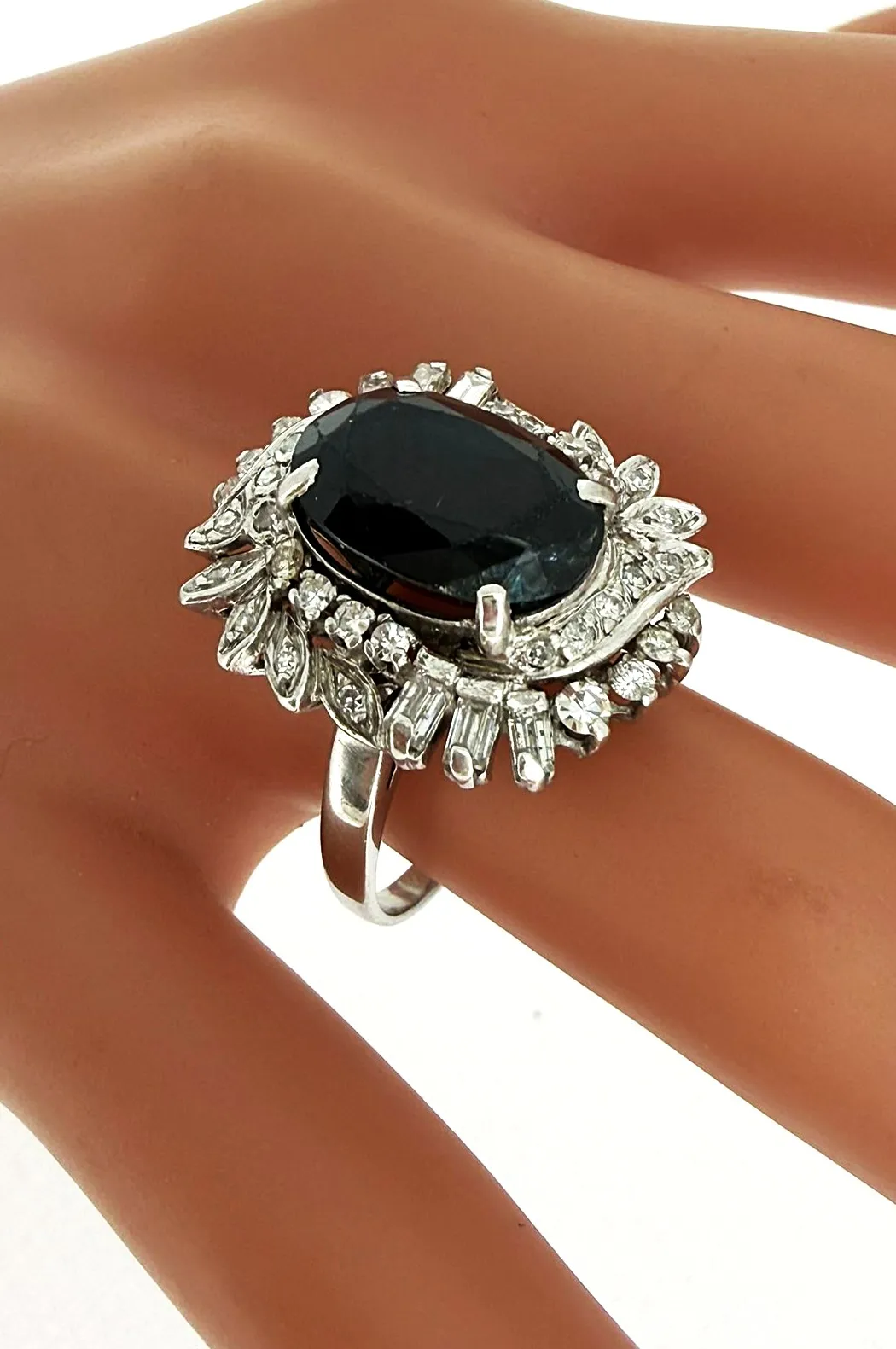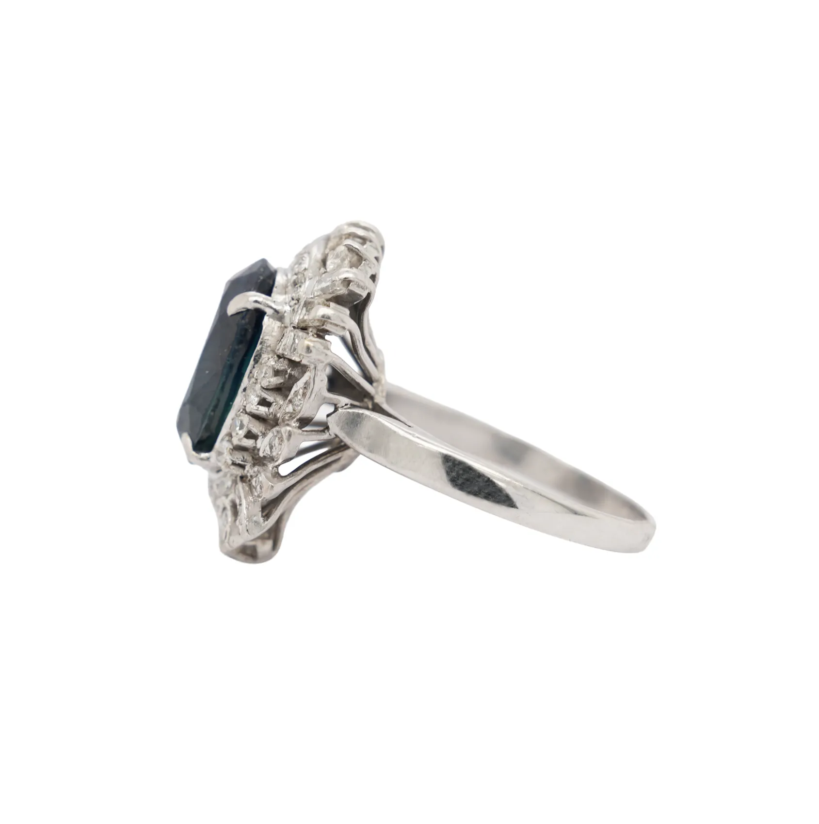 A striking and luxurious statement piece, this 18ct white gold dress ring features a captivating 3.00ct sapphire at its centre, beautifully enhanced by an impressive 1.25ct of surrounding diamonds. The deep blue sapphire contrasts elegantly with the brilliance of the diamonds, creating exceptional sparkle and visual impact. Crafted in premium 18ct white gold and weighing 8.2 grams, this ring offers a substantial, high-quality feel on the hand. The generous diamond setting enhances the overall presence, making it ideal as a bold dress ring or standout occasion piece. A timeless combination of vibrant colour and dazzling brilliance, designed for those who appreciate fine craftsmanship and elegant statement jewellery.
