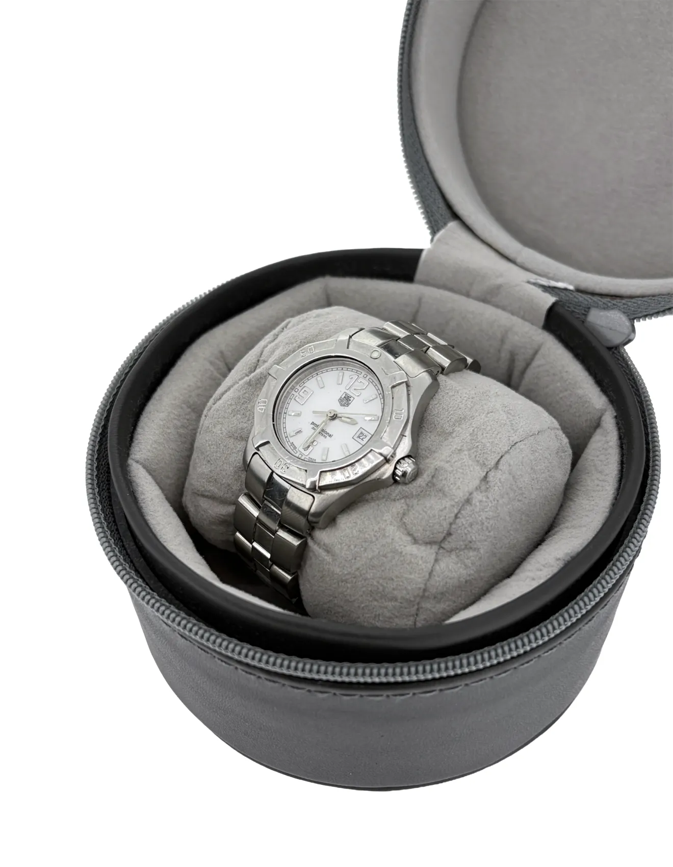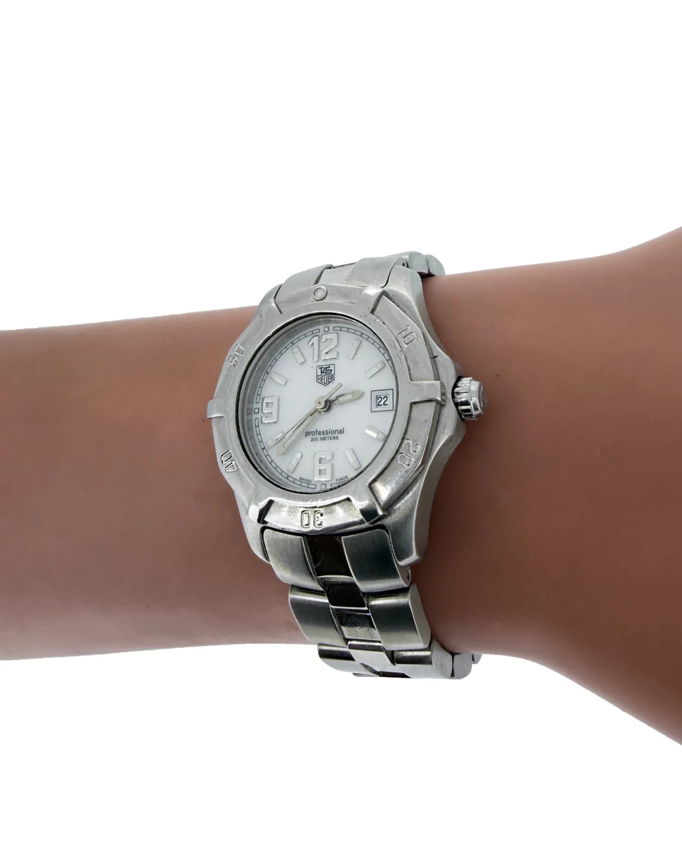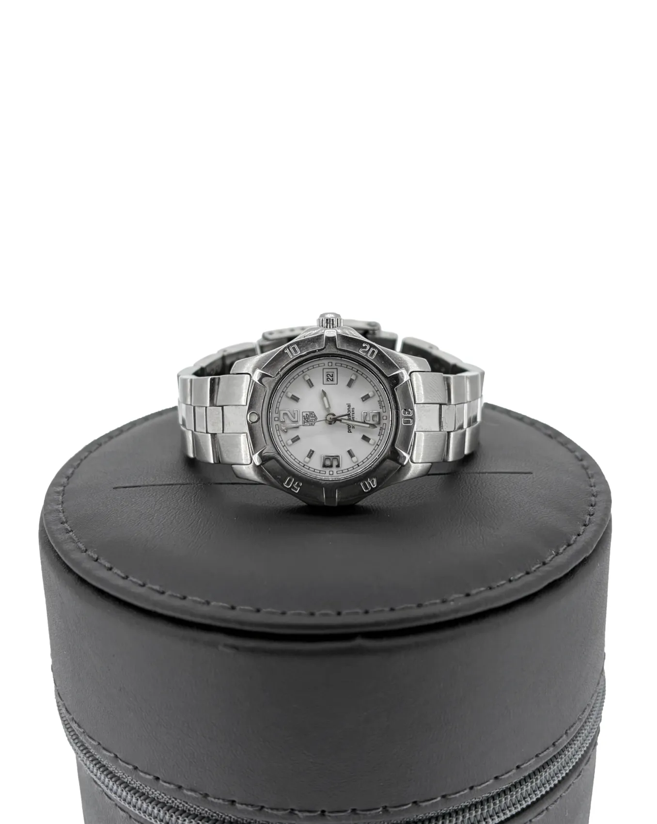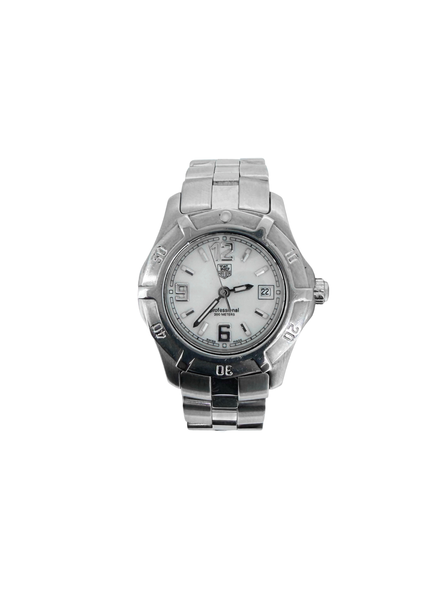 Sporty precision meets timeless elegance in this Ladies TAG Heuer Aquaracer 28mm Stainless Steel Watch. Designed for performance and everyday versatility, this refined timepiece reflects TAG Heuer’s legacy of Swiss watchmaking excellence. The 28mm stainless steel case offers a sleek and comfortable fit on the wrist, while the clean, legible dial ensures effortless readability. True to the Aquaracer line, the watch is built with durability in mind, making it suitable for both active lifestyles and sophisticated daily wear. The stainless steel bracelet is fully adjustable, allowing for a secure and personalised fit. Dating to circa 2005, this piece carries a classic aesthetic that has stood the test of time, combining robust construction with understated luxury. A perfect choice for those seeking a reliable Swiss timepiece with enduring style, it makes a versatile addition to any watch collection.