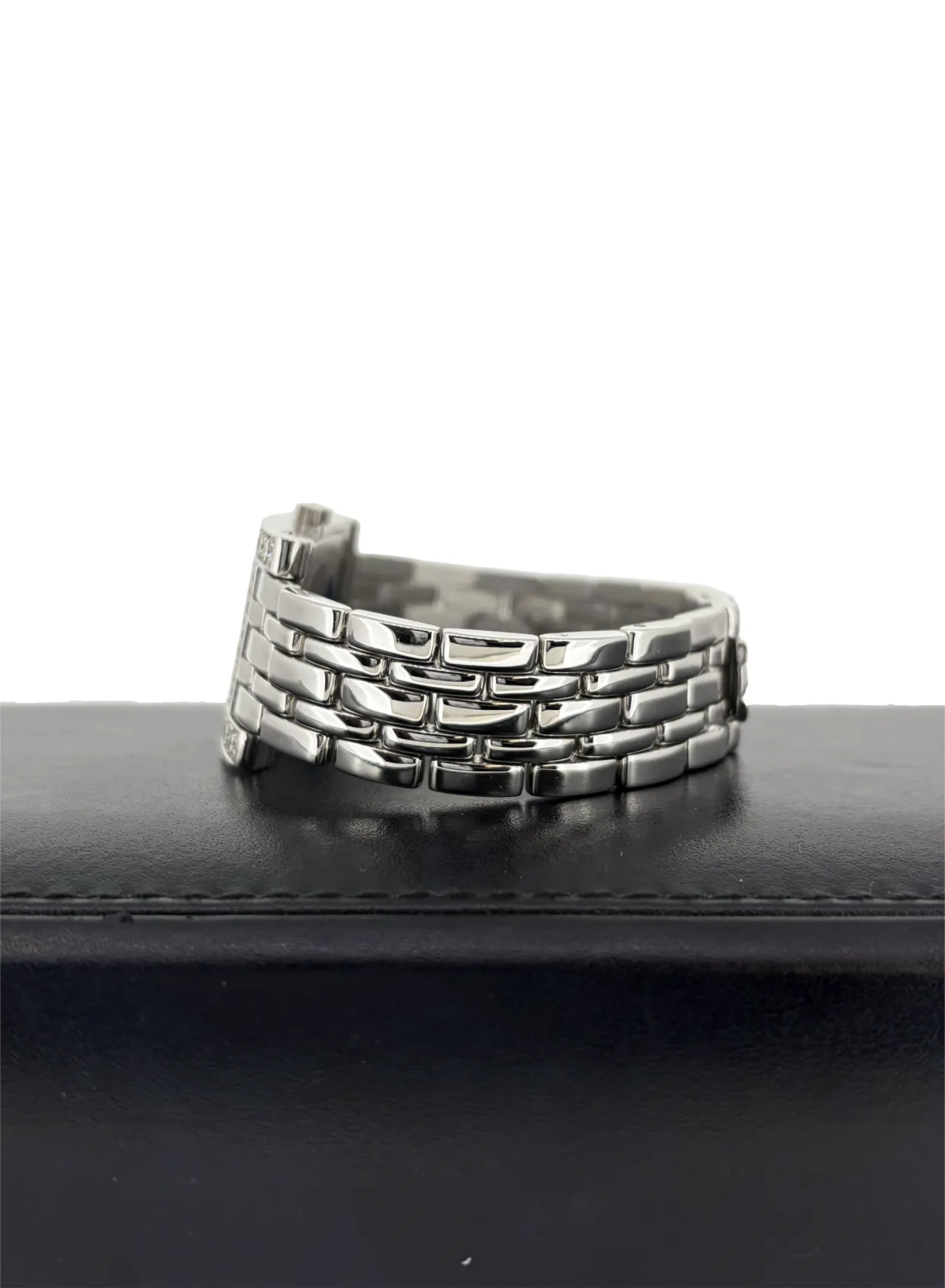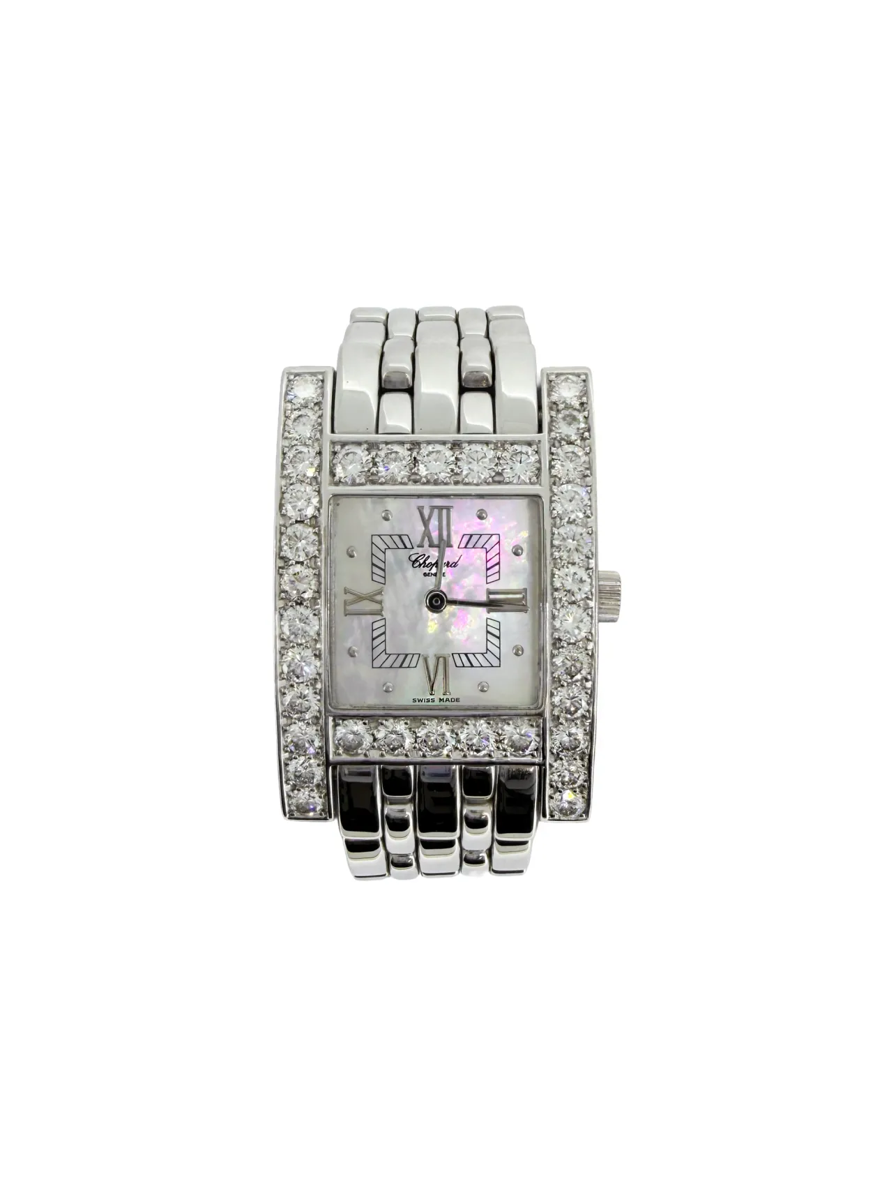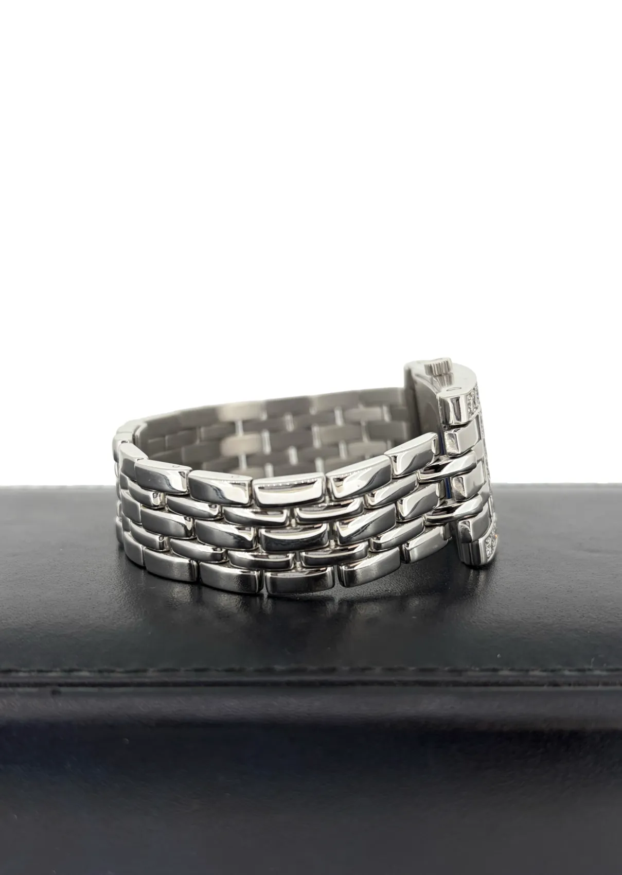 Elegant and sculptural, this Chopard YOUR Hour Solid 18ct White Gold & Diamond Watch (Ref. 13/6621) is a stunning example of haute horlogerie blended with fine jewellery design. Crafted entirely in luxurious 18ct White Gold, it embodies Chopard’s signature elegance and exceptional attention to detail. The distinctive YOUR Hour silhouette features flowing, organic curves that gracefully wrap around the wrist, creating a beautifully feminine and contemporary profile. Set with brilliant-cut Diamonds, the design radiates refined sparkle, enhancing its luxurious and eye-catching appeal without overwhelming its understated sophistication. Powered by a precise Swiss movement, this timepiece offers reliable performance while maintaining its focus on artistry and elegance. The bracelet is fully adjustable, ensuring a secure and comfortable fit tailored to the wearer. A true statement of luxury, this Chopard watch is more than a timepiece—it is a piece of wearable art, ideal for collectors or those seeking an exceptional and timeless addition to their Jewellery collection.