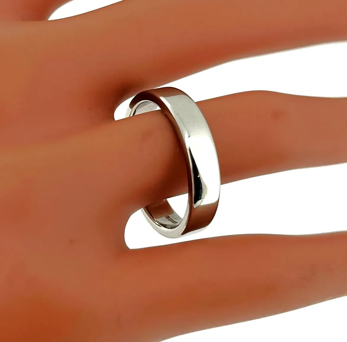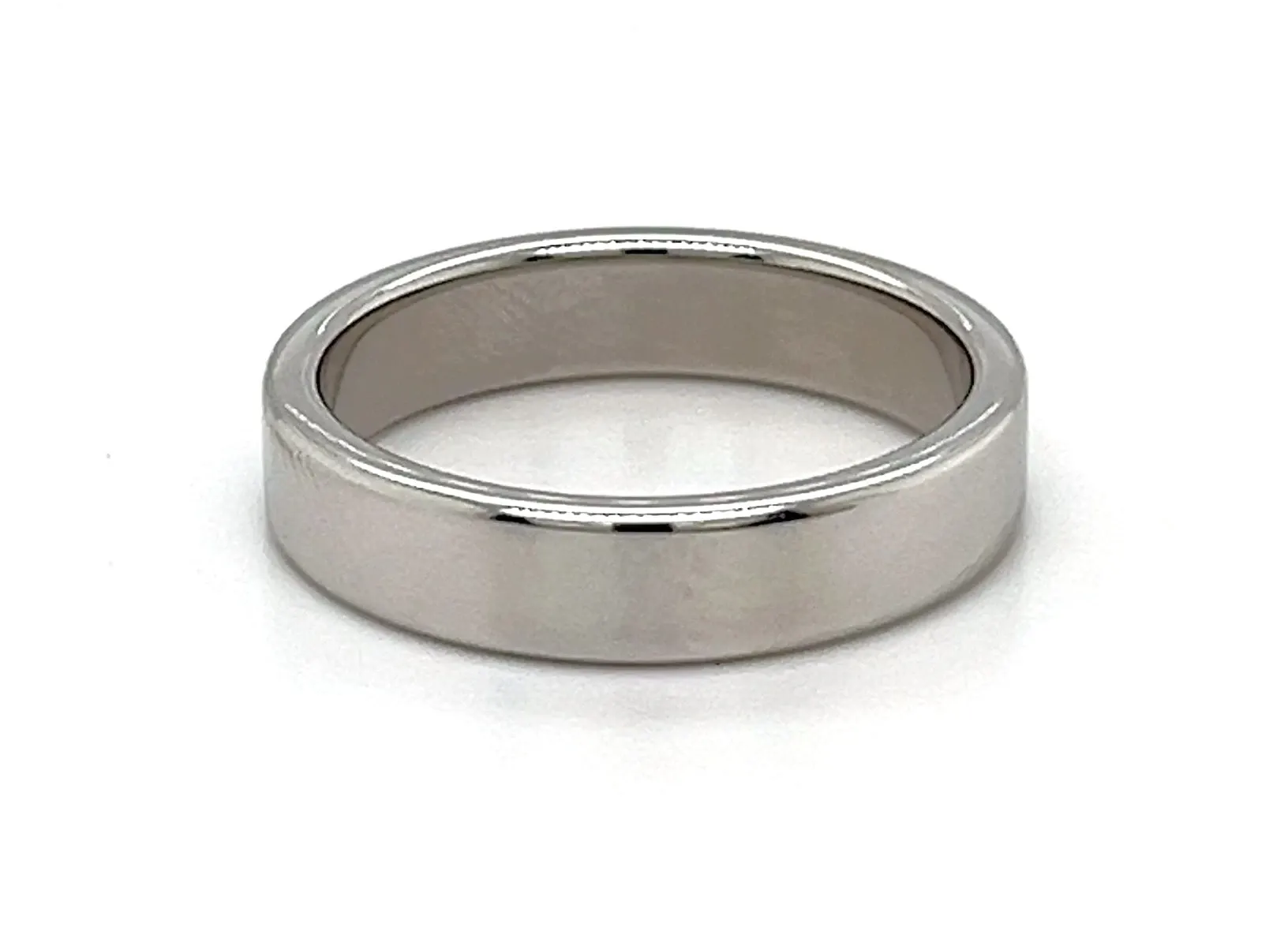 Platinum 5mm Flat Court Wedding Band – 12.7g Crafted in premium platinum, this 5mm flat court wedding band offers timeless sophistication and exceptional comfort. The flat outer profile creates a sleek, modern look, while the court-shaped interior ensures a smooth and comfortable fit for everyday wear. Weighing a substantial 12.7 grams, the ring has a reassuring presence on the hand, symbolising both strength and commitment. Platinum’s naturally white lustre and durability make it the perfect choice for a wedding ring that will stand the test of time without fading or tarnishing. Details: