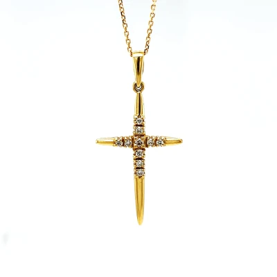 0.10ct Diamond & 18ct Gold Cross Pendant 1.18g ( 30mm x 15mm)
