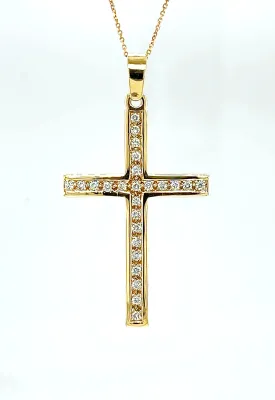0.50ct Diamond & 9ct Gold Cross Pendant ( 50mm x 27.5 x 2.1mm) 5.8g