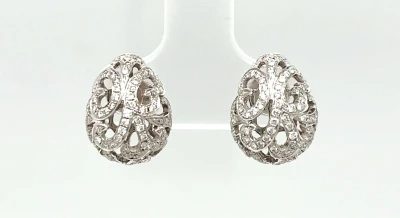 0.80ct Diamond & 18ct White Gold Ornate Stud Earrings 3.0g