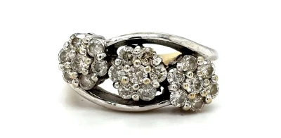 0.75ct Diamond & 18ct White Gold Trilogy Cluster Ring 5.9g