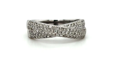 1.00ct Diamond & 18ct White Gold Cross Over Band/Dress Ring 5.5g