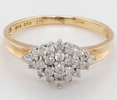 0.50ct Diamond & 9ct Gold Cluster Ring - 2.7g