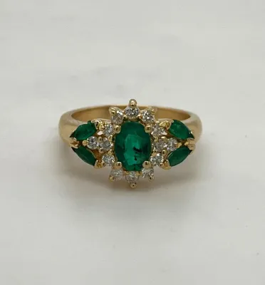 1.40ct Emerald & 0.80ct Diamond Dress Ring 14ct Gold 5.2g