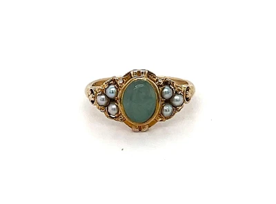 Jade & Seed Pearl Dress Ring -9ct Gold 2.8g