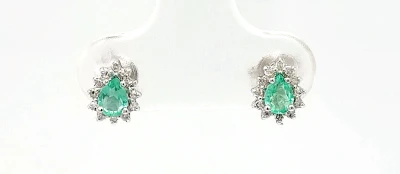 0.40ct Emerald & 0.15ct Diamond Stud Earrings -9ct White Gold 0.9g