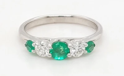 0.63ct Emerald & Diamond Eternity Ring 18ct White Gold 3.2g Size N