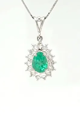 1.35ct Emerald & 0.34ct Diamond Pendant- Platinum 5.5g 17inch