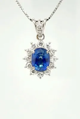 2.31ct Sapphire & 0.80ct Diamond Platinum Pendant 5.4g 16/18inch
