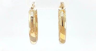 9ct Gold Patterned Oval Hoop Earrings 2.4g ( 24.7 x 20.0 x 4.0mm)