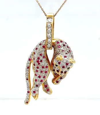 Ruby Diamond & Emerald Panther Pendant 18ct Gold 22.4g